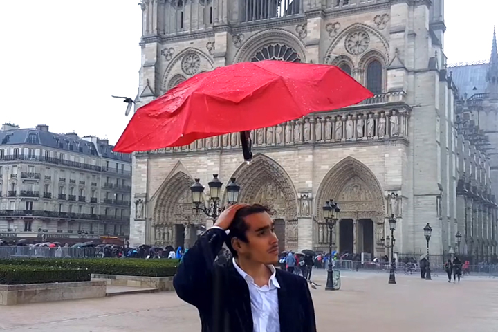 法国一位魔术师Moulla和他成立的公司,发明了一把能自动飞行的悬浮雨伞DroneBrella,他们在雨伞柄上安装了自动飞行装置,通过遥控器或手机操作来移动这把雨伞。比如选择“follow me”模式,让它漂浮在你的头顶上并跟随你,这样就可以为你遮阳挡雨,你也可以控制它的飞行轨迹,就像控制无人驾驶飞机一样,不过DroneBrella如果真的要广泛应用的话需要克服很多困难,比如强风下如何保证它不会飞到别人头上去。