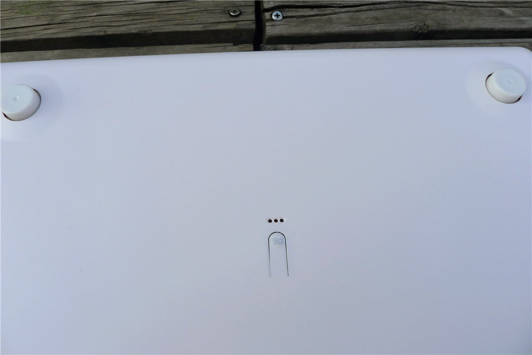 Withings Body需要4节七号电池,出厂时已经安放在电池仓内,不用再去购买。根据小编的经验,电池仓内塑料毛刺处理的情况,是衡量一个产品做工好还的标准之一,虽然没有什么科学依据,但是这部分是经常被厂家忽略的地方。最起码小编用过的产品里,中高端产品在这部分处理的就相对较好,低端的多有毛刺出现。对于Withings Body的电池仓,小编目测里面的毛刺处理的相当干净,所以对于产品做工,小编还是比较满意的。