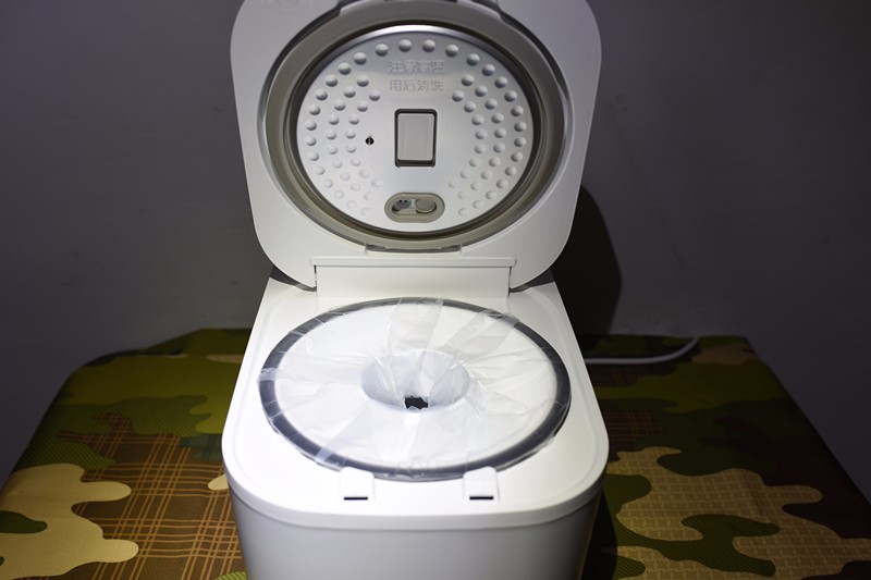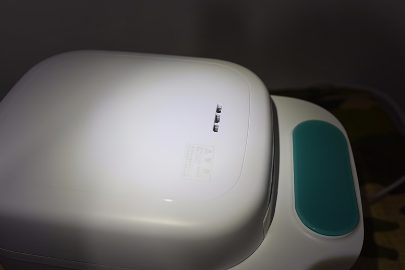 ▲盖子上有玄机哦,并非只有一个按键,除了机身外的饭小二,盖子上还有一个配网按键。长按三秒配网键,此时饭小二为蓝灯闪烁进行配网。成功配往后,提示灯为白色闪烁。短按一次配网键,进入清洁模式,提示灯变为绿色常亮。在工作中,如白灯常亮或者呼吸,绿灯常亮或者闪烁,短按一次即可取消当前工作状态,返回待机模式。