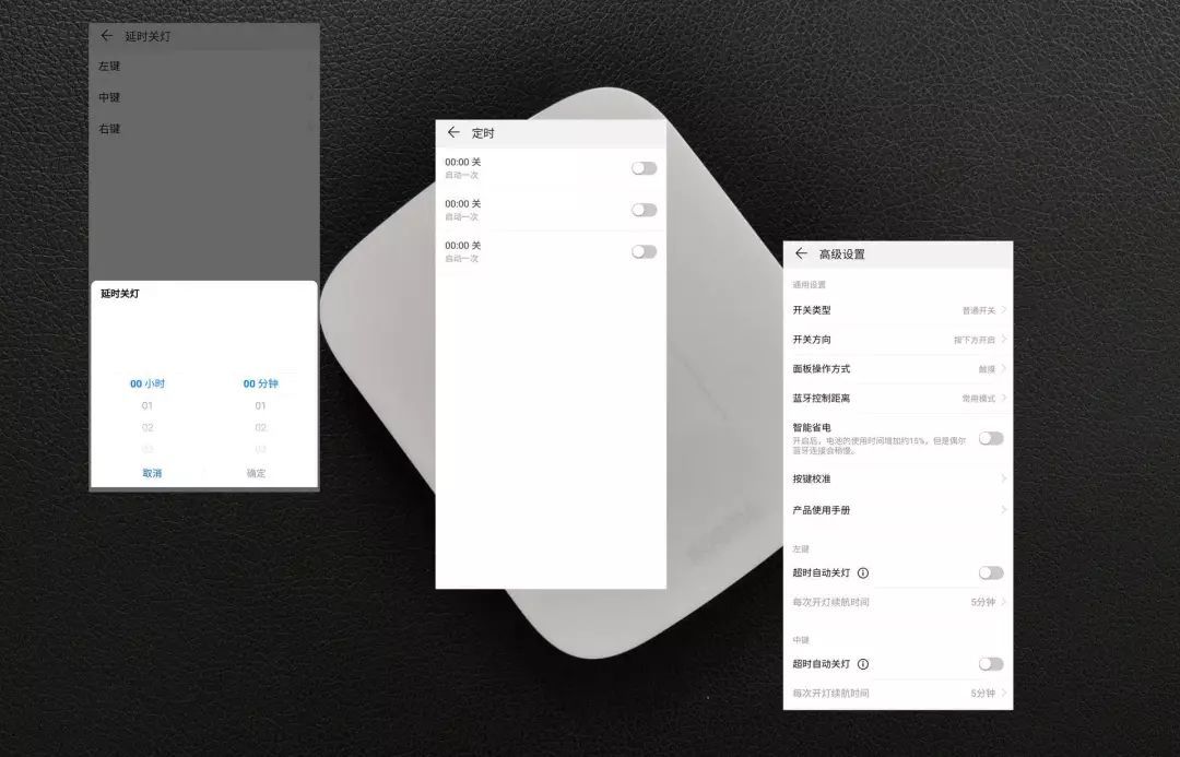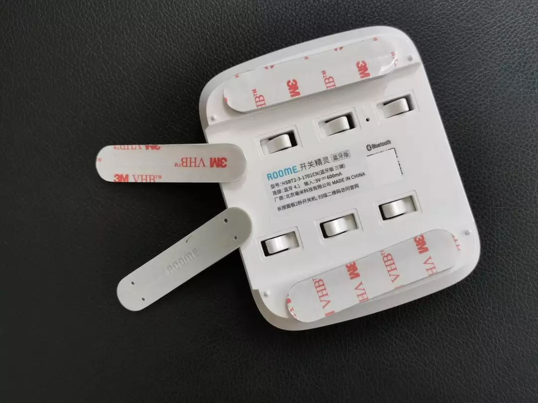 这两天的天气突然就降温了,床头忘记安装开关了,又不想受冷得下床关灯,这个时候有智能控制开关该多好,偶然体验到ROOME开关精灵,不得不说,懒才是推动科技发展的动力。 看外包装的产品图示,若不是左下角有个HUAWEI HiLink的标识,还以为是普通按键开关呢,外包装其貌不扬,较为低调。此次拿到的是三键式的开关精灵,家里有三键式的按键开关的一看就清楚了,产品素雅洁白,仅有三键式中间的间隔条纹以及下端的ROOME产品logo。标识不是很清晰,有种朦胧感,当时就感慨,ROOME也太低调了吧。 ROOME开关精灵本身体积不大,厚度比传统开关厚了不少,为了便于单触控制灯具,ROOME开关精灵采用了分层式设计,这厚度也算不错了。 不同于其他智能开关,ROOME开关精灵内置了一块1150mAh的锂电池,采用Micro USB充电接口,因需要通过粘胶与开关充分接触,或许只能通过接入充电宝来充电了。 赠送了两种不同形状的粘贴胶条,一种适用于适用于平直面板开关,而另一种有斜/弧面的面板开关,平直面板开关对于贴胶没有上下区别。初次使用的时候,需将原传统开关上的灰尘擦拭干净,便于一次未粘贴到位,可及时调整。 ROOME开关精灵最智能的零件就在这个背面了,分别有三组上下的机械开关,通过感触按压反馈来控制传统开关。 首次使用ROOME开关精灵,需下载华为智能家居APP进行添加,待添加后进行按键调节。 添加后,APP端会主动提醒用户进行开关适配,并进行引导操作,直至用户调试成功。ROOME可选择在手机APP端或者单触开关进行控制。 比较意外的是ROOME开关精灵居然自带了那么多强悍的功能,可以延时、定时关灯,而且是可以针对三键中的任意一键来单独设置。这种功能也是逼迫自己早点睡觉的一种方法了吧,关灯了,你还要继续玩手机吗?如果你不怕瞎的话。那么ROOME开关精灵的控制原理是啥?当APP端对单键进行调节的时候,可以看到后面的三组机械开关随调节而不停活动着,我想我理解了控制原理。 ROOME开关精灵长按3秒后即可开启,呈蓝色指示灯提示,而长按3秒则为关闭状态,呈红色指示灯。日常使用时,可根据面板上的指示灯颜色判定灯具状态(适配状态下进行判定,特别是针对房间有其他灯光亮起的时候,无需抬头观望,即可判定)。体验ROOME开关精灵约一周,比较喜欢的就是五一假期可以慵懒的躺在床上,想玩手机了,就用手机来控制灯具开关;晚上怕睡着了忘记关灯,也可以不用下床,通过APP来设置定时/延时进行关灯了,既保障了睡眠光线,又节约了能源。总的来说,ROOME开关精灵真的是懒人神器,不过需要通过蓝牙连接,可惜不支持Zigbee协议,无法通过荣耀AI音箱来控制,希望后续能加入吧。