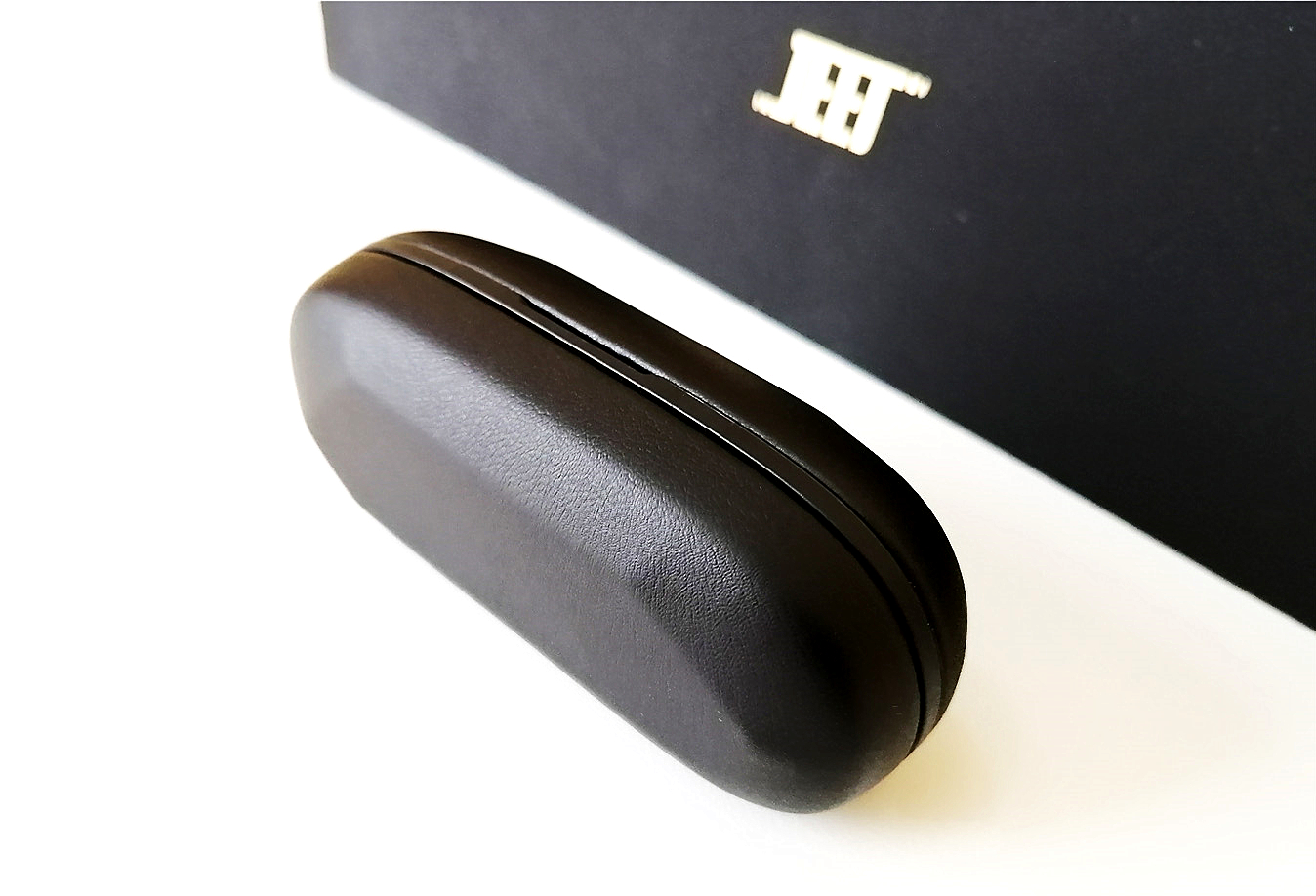 再来看看充电仓,这次JEET MARS 的充电仓外观一改以往瘦小设计,采用了比以往较大的眼镜盒外观设计,正面还印着“JEET”的logo。
