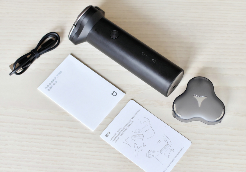包装清单:剃须刀、清洁毛刷、USB Type-C充电线、说明书、提示卡。另外剃须刀刀头上还有一个保护盖,提示卡上有使用和清洁、维护说明,不过对于男士来说基本上上手就用,大都不会在意这些。