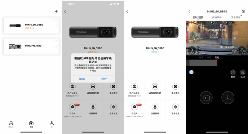 ▲mini5行车记录仪在使用流量卡进行远程控制状态下,能实现远程预览、碰撞通知、电子围栏和云相册4G,这就相当于你又多了一只眼睛,查看车内角度的动向,还可对车辆实时状态的监管,有突发情况下mini5会发出紧急信息到您的手机中。