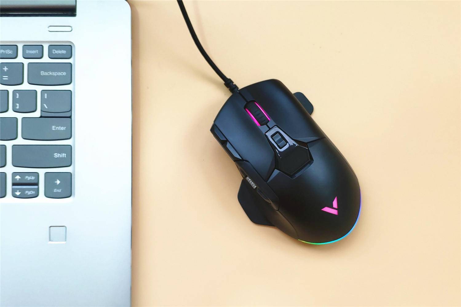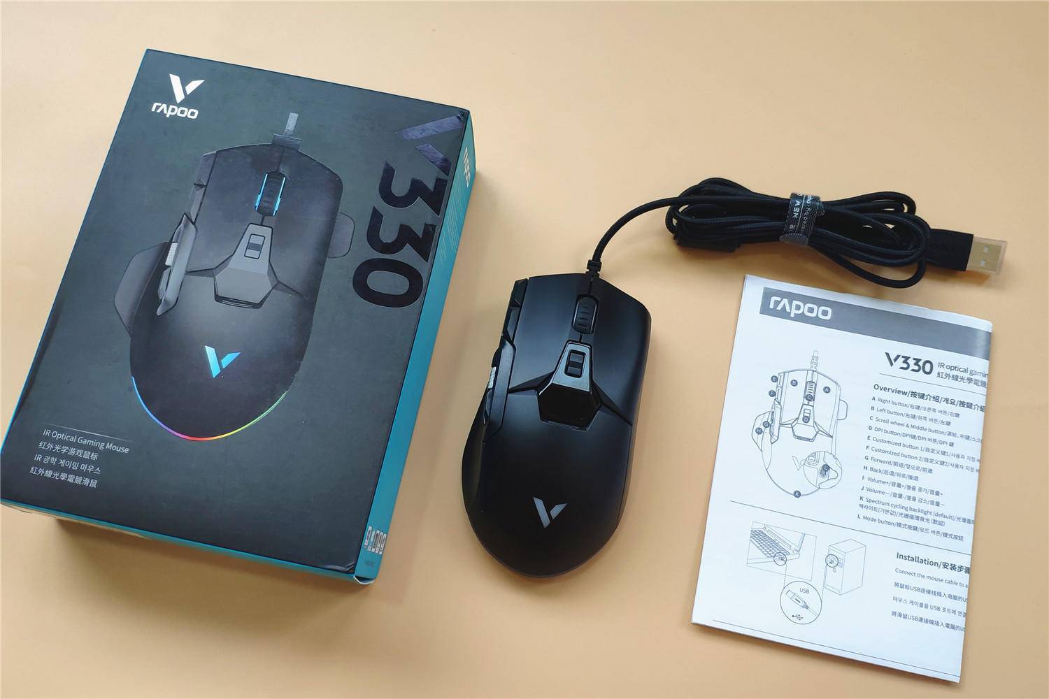 一段小序一说到鼠标,就能回想起学生时代,带着鼠标键盘去网吧的时光,愉快、惬意又充满颓废,往事一去不复返,但对游戏的热爱依然不减当年,作为专业人士,当然更了解设备的重要性了,今天就给大家推荐一款游戏鼠标:雷柏V330幻彩RGB。游戏外设最重要的是使用性能和延迟效果,所以此类设备我更倾向于有线连接,其实为了方便,也曾经尝试过几款号称低延迟的蓝牙鼠标,但实话实说,低延迟不等于零延迟,游戏里哪怕毫秒级的延迟也能让我们轻易捕捉,所以最终确定有线连接更适合我,那么今天这款雷柏V330幻彩RGB游戏鼠标的表现如何呢,我们马上开始测评。外观设计雷柏经典的黑+蓝配色包装,辨识度非常高,包装正面是雷柏V330的渲染图以及型号信息,背面则是产品卖点介绍,总的来看,这种设计能让消费者更直观全面的了解雷柏V330。第一眼看到鼠标就有惊艳的感觉,通体纯黑的外表采用了细腻的磨砂喷漆工艺,触摸感非常舒适,而且外观上有种浓浓的机甲风,有种可变形的感觉(实际上真的可以变形哦)。鼠标尺寸12.5x6.85x4cm,属于中大型鼠标,加上外观采用人体工程学设计,符合国人手形的同时,也有非常出色的手持舒适性,这里需要注意的是,鼠标为右手鼠标哦。可以看到,雷柏V330的按键也非常丰富,包含左右击键、滚轮、DPI键、前进后退键、侧滚轮及侧前进后退键,在游戏模式下,可以对12个按键进行控制编程,满足你对鼠标的DIY设计,使鼠标更加符合你的使用需求。这里强调一下,其中DPI键支持7档切换,满足不同游戏不同屏幕的精度需求;另外侧边滚轮在办公模式下有着非常出色的应用表现,能极大的提升办公软件操作效率。底部有模式切换键,可自由选择游戏模式或办公模式;在底部我们也可以看到鼠标的光学传感器,雷柏V330采用的是PMW3327电竞光学传感器,能够精准的捕捉移动操作,并实现准确的定位,从而实现游戏里的精彩表现。开始变形吧,底部两侧设有两块可拓展的侧裙,展开后可以更好的承载大/小拇指,提升使用舒适性的同时也能实现不同的握持操作,比如展开左侧裙实现捏握姿势,如此能更适合横向移动较多的FPS游戏;此外小伙伴们也不必担心侧翼脱落,其采用了磁吸式固定,方便调整的同时也能保持稳定。鼠标线长约2米,完全能够满足我们的日常使用需求,而且线材上还有定制的捆绑条,可以选择性捆绑部分线材,达到更适合的使用长度;鼠标线采用了尼龙编制外皮,更加坚固且耐用。到了展示环节,作为游戏鼠标当然要有炫酷的背光系统,雷柏V330不仅有背光,而且是三区域背光,包括滚轮内、正面LOGO、底部后侧围,看上去更加夺目,而且雷柏V330采用的是1680万色RGB背光系统,支持上千万种配色哦。如果不喜欢炫彩的灯光秀,也可以在驱动程序内进行关闭,所以说这款雷柏V330的定制能力非常强大,基本能够适用所有用户群体,大赞!使用感受常规的点击操作有明显的清脆感,并且回弹非常迅速,即使超快速连续点击也能轻松实现,从而实现游戏里的神操作;滚动式操作也非常顺滑,也能明显感受到内部设计的滚动反馈,综合来看,能轻松满足鼠标的基本操作功能。握持鼠标,雷柏V300能很自然的托起掌心,降低手部用力,让人明显有很舒适的感觉,而且因为整体质量很轻,通过大小拇指即可轻松移动或抬起鼠标,如此能降低操作疲劳感。常规的鼠标垫自然能够轻松应对,我们还体验了沙发布、地板、木质桌面等,雷柏V330在以上这些材质上都能够保证稳定精准的输出,可见能力非常出色,这也能满足我们在不同环境下的使用需求。通过驱动雷柏V330配套驱动软件,我们能够自定义DPI、灯光、宏等设置,从而使其更加符合我们自身喜好,驱动下载在说明书有详细介绍,我们就不再过多表述,直接进入驱动界面,首先是主要设置,这里我们可以在200~6200DPI中选择7个使用档位,还可以定义12个按键功能以及切换5组配置文件等操作。然后是灯光设置,这里可以为鼠标设置5种灯光模式,支持自定义灯光颜色,调整灯光亮度,当然低调的人群也可以选择关闭灯光,至于炫酷程度嘛,请直接看图吧。宏设置可以说是很多游戏玩家的大招了,这里你可以通过录制宏指令,实现一键触发一串操作,极大的优化了操作过程,轻松实现游戏里困扰的连招功能!此外还支持固件升级及云同步功能,这里重点聊一下云同步,其支持将驱动软件的设置内容上传至云端,如此就能方便鼠标在不同设备上的使用,就好似学生时代拿着鼠标去网吧,一键应用云驱动,更快速度找回属于自己的鼠标功能。总结通过测评我们不难发现,雷柏V330的确是一款非常出色的游戏鼠标,其保证基础的使用功能之外,还支持多种操作优化,实现了鼠标功能的自定义;另因外形并没有过于夸张的设计,也很合适在办公平台使用,所以综合来看这称得上是一款全能鼠标了;因此在受众面上,除了适合游戏玩家外,我认为也很适合白领办公,因其稳定性及良好的手感,加上炫彩的表现,在办公室也是一道非常不错的风景线。