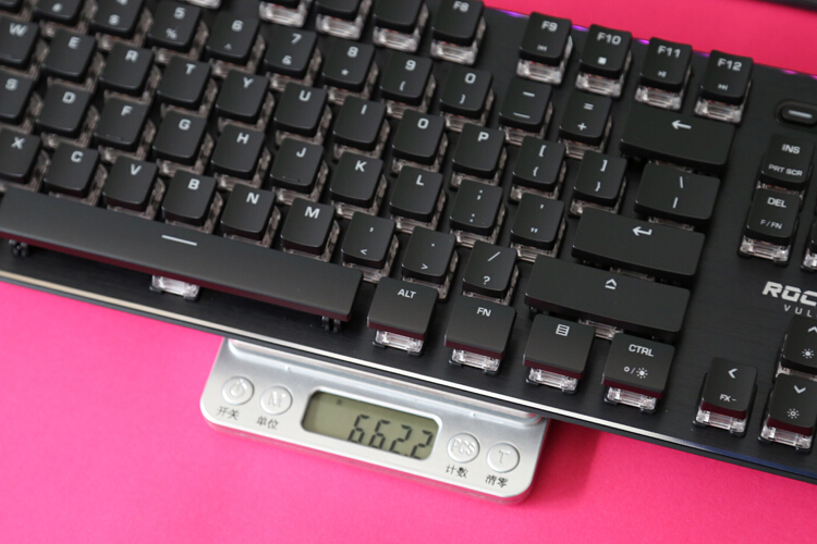 即使采用了标准轴体方案,冰豹依然打造了仅有22 毫米高度的Vulcan TKL,与采用超薄轴体g913tkl不相上下,明显低于标准机械键盘。轮廓采用简单却十分耐看的线条,搭配窄边框裸轴,上面板黑化全铝拉丝纹处理,边缘倒角工艺,每一个角度均展示不同的反射美感,特殊涂层光泽度也不错,提升质感的同时呢也更易清理。