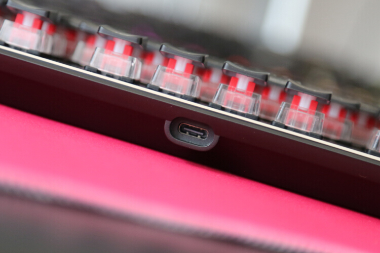 键盘为中部出线,键线分离typec接口,带加固槽,更体现了通用性和便携性。