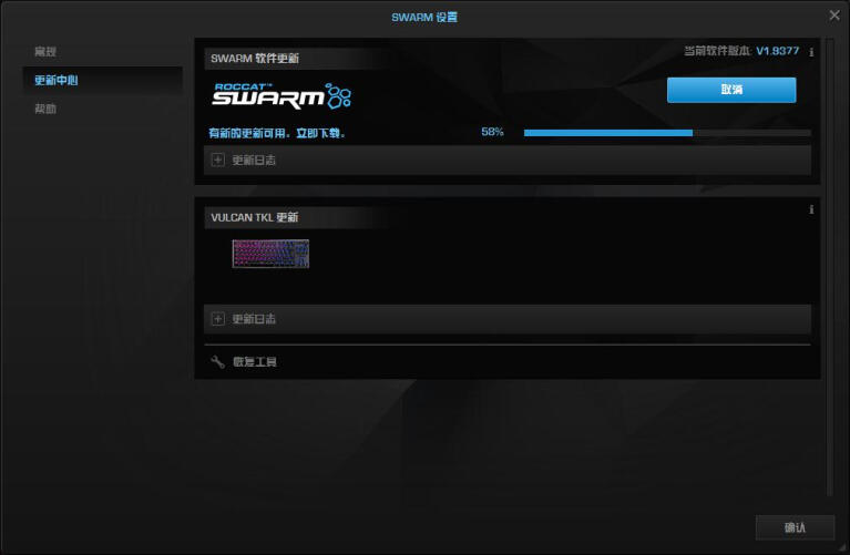 下载安装Swarm驱动后,会要求单独升级安装键盘小驱动,随后即可正常设置。