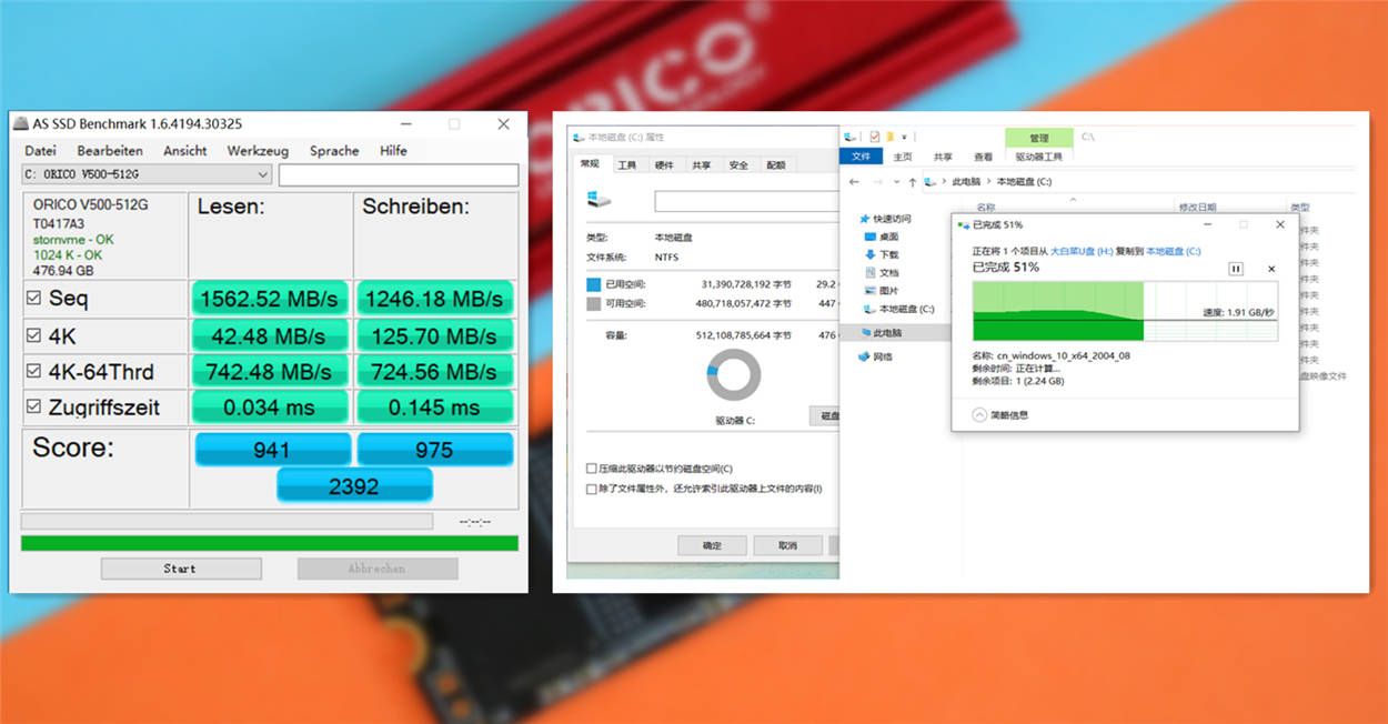 不同软件测试的结果数据有所差异,实际还是需要通过文件进行拷贝来看,将4个GB的文件进行拷贝到SSD时,速度达到了1.9GB/s,可以说还是比较快的,无论是系统还是其他应用软件,都可以大大提高打开和运行速度。