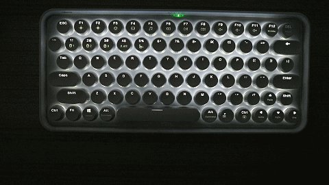 每个按键底部都采用了白色背光设计,6种灯光模式,按下Fn+Ctrl组合键可以自由切换背光亮起模式,虽然背光模式很多,但白色单一背光,总觉得缺少“光污染”有些遗憾。