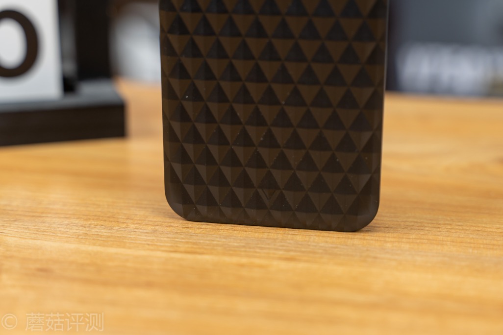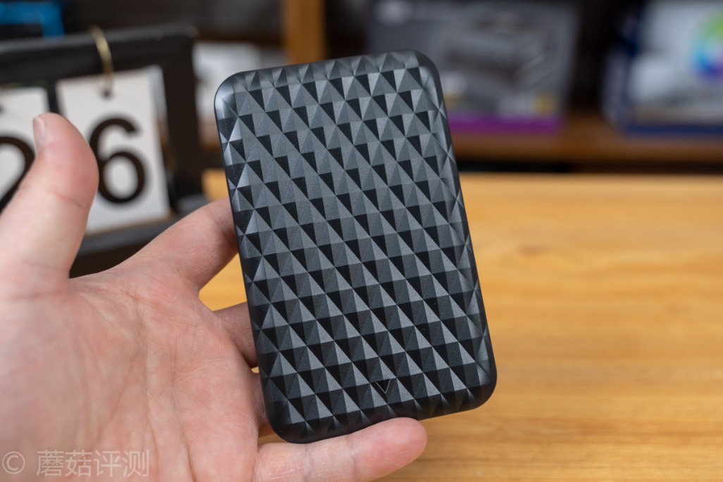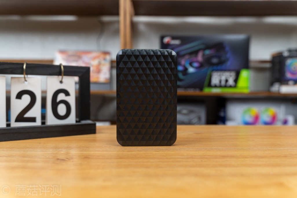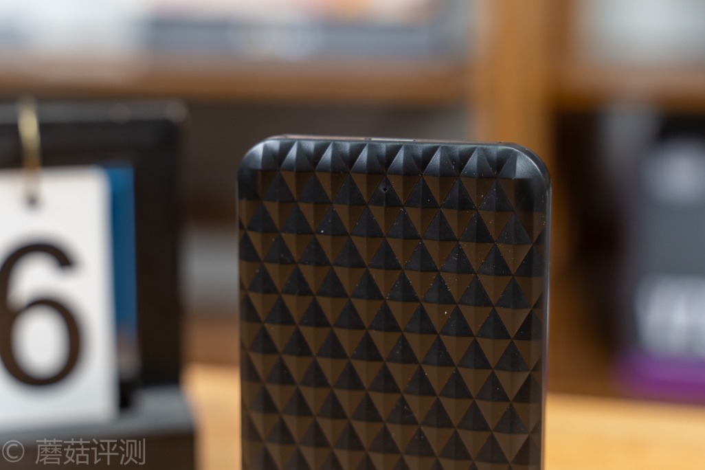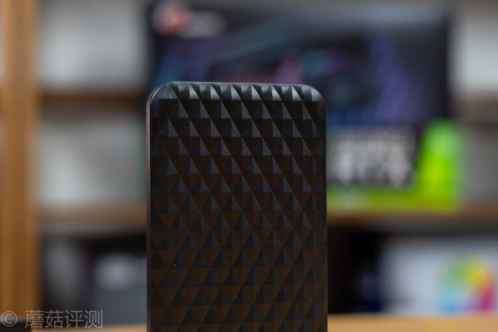 ▼硬盘盒的外观确实挺漂亮的,黑色的,正面有菱形的装饰造型。