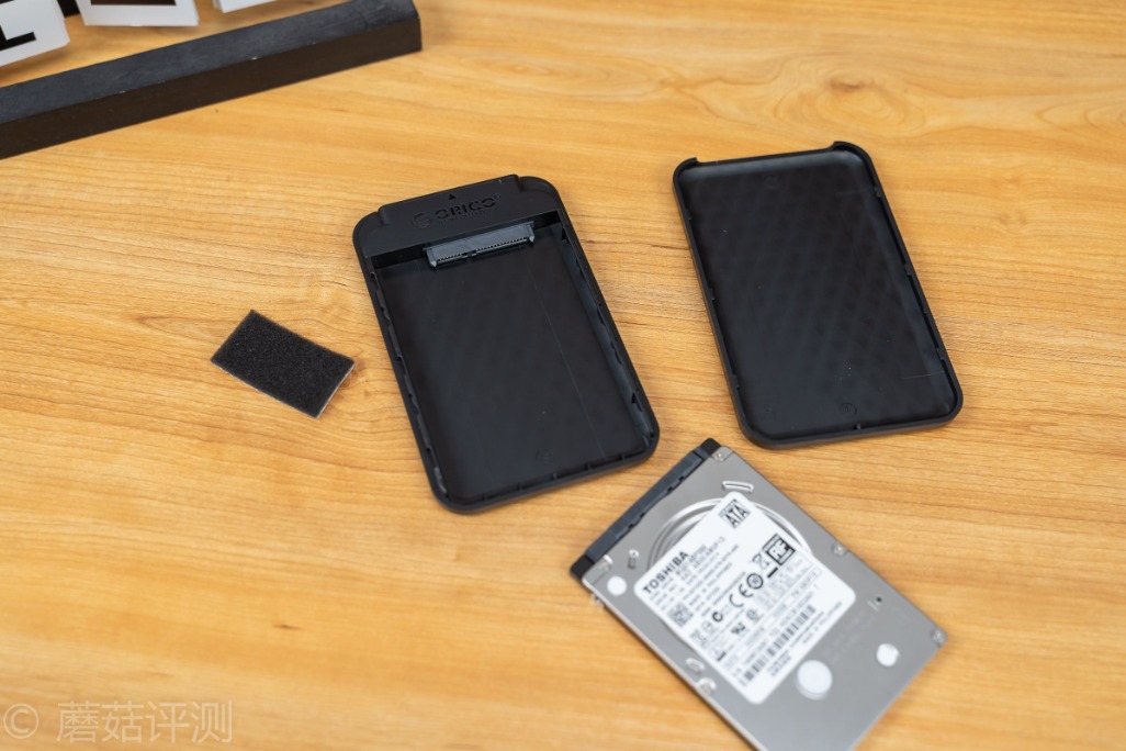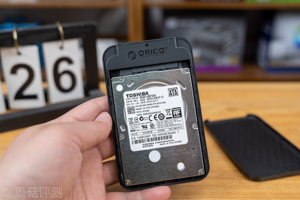▼东芝的2.5寸笔记本机械硬盘,斜着直接插进硬盘盒就OK了。