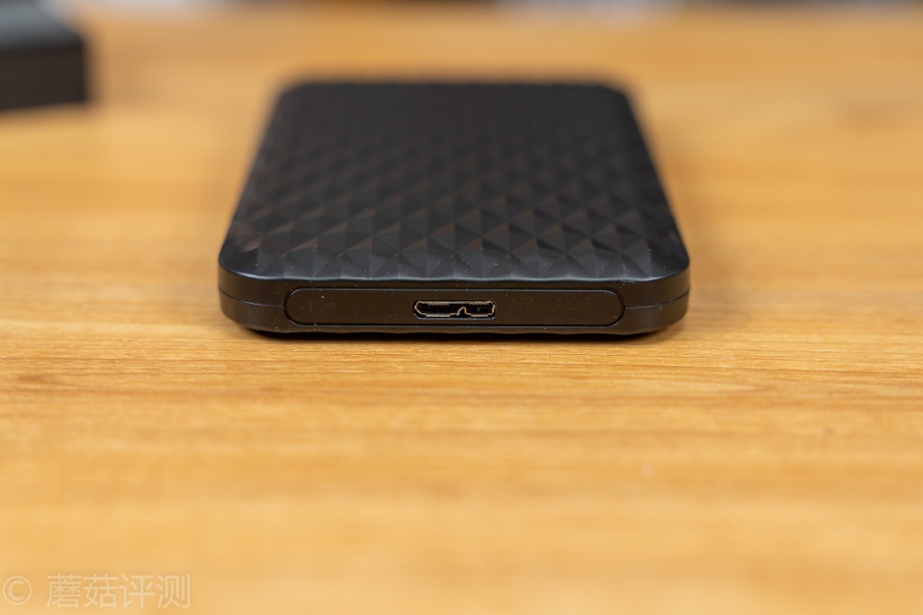 ▼硬盘盒的侧面,硬盘的数据接口,USB3.0 Micro-B接口。