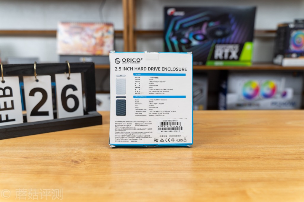 ▼包装背面介绍了硬盘盒的相关信息,包括尺寸、接口、性能等参数。