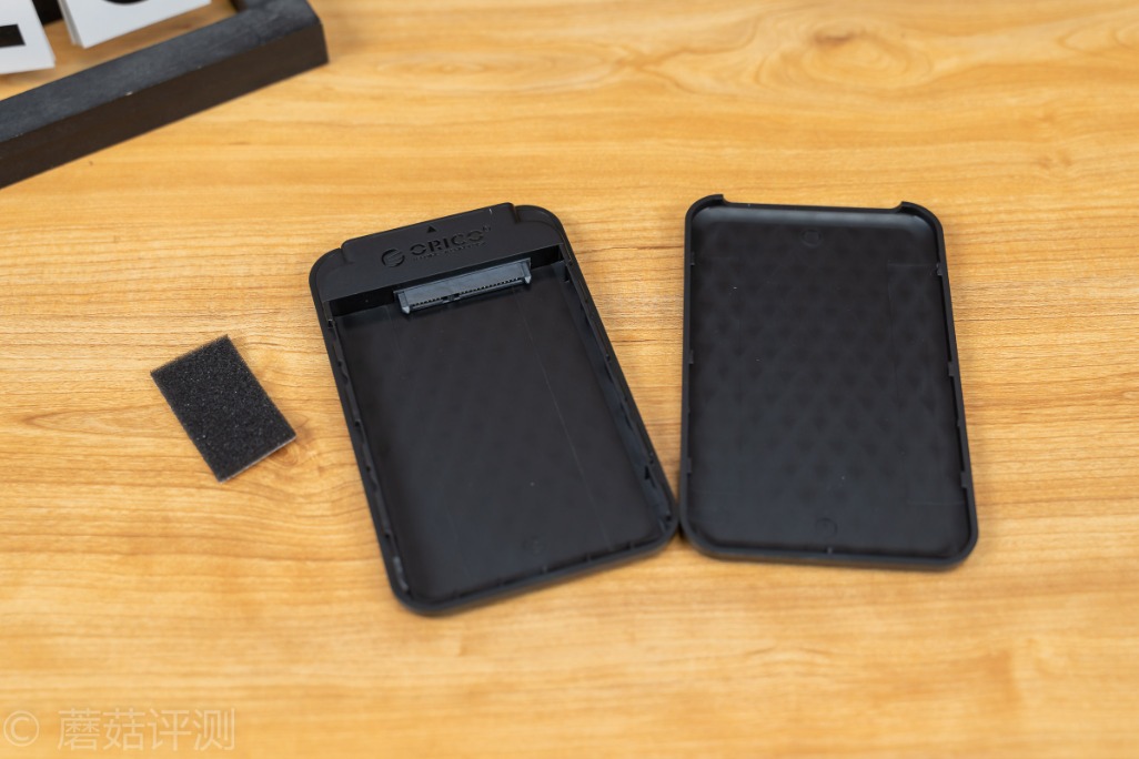 ▼打开硬盘盒,里面空空的,还内置了一块海绵。