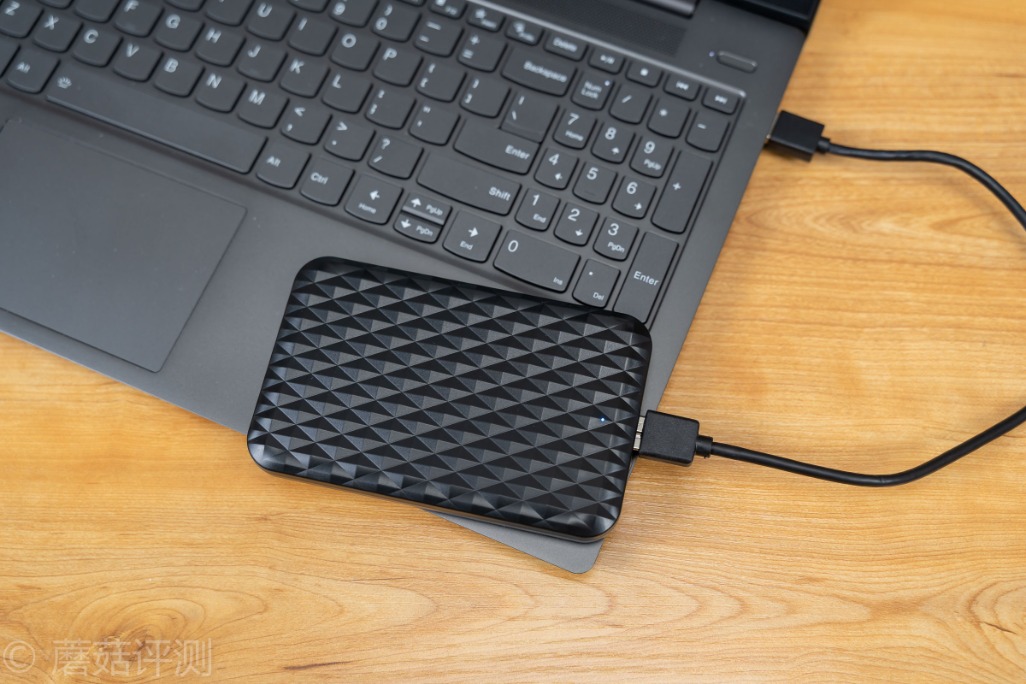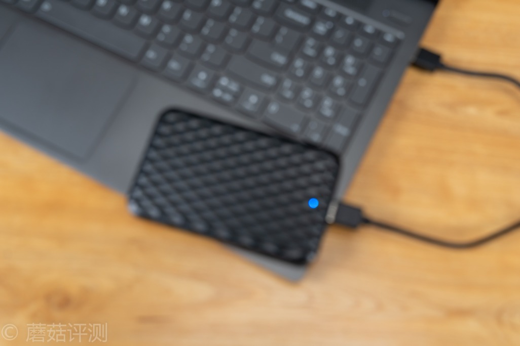 ▼硬盘盒插到笔记本上之后,硬盘盒上会亮蓝色的指示灯。