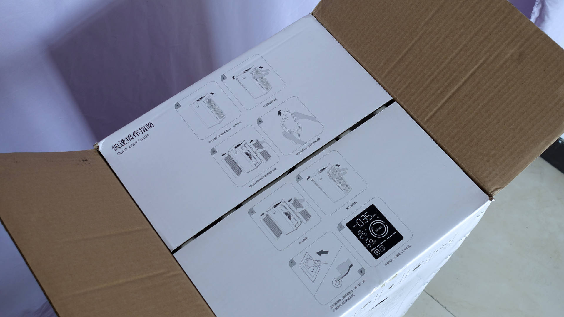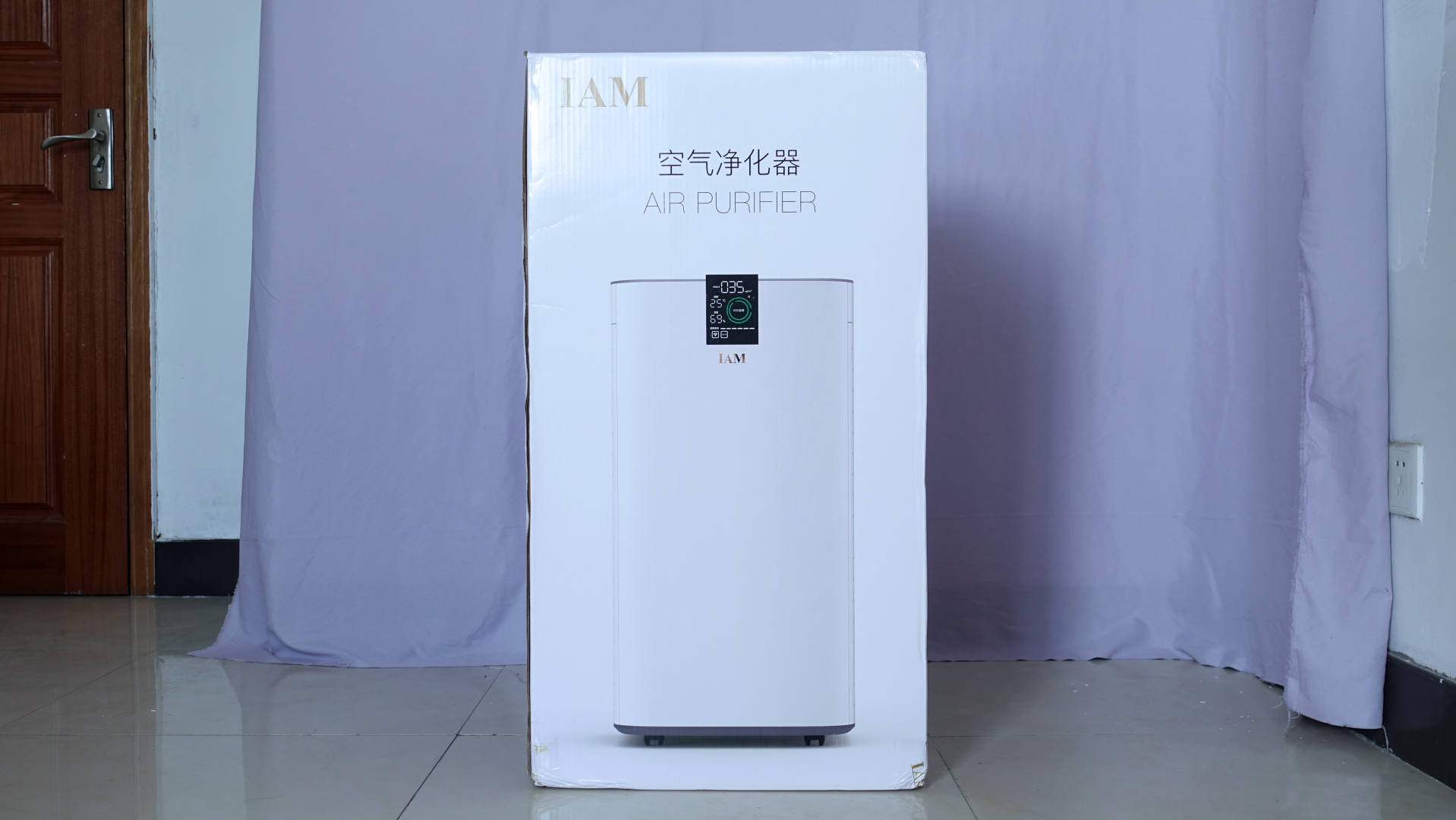 加湿器和空气净化器是北方过冬的两大神器,加湿器可以有效降低室内空气干燥程度,而空气净化器能够除去除空气中的甲醛、甲苯、TVOC等有害气体。而我生活的城市——产煤大省山西,冬天的空气不仅干燥而且污染严重,所以一台好的空气净化器是过冬必备良器。这次非常有幸拿到了IAM空气净化器KJ780F,这款净化器的颗粒物CADR能够达到801m³/h,甲醛CADR能够达到531m³/h,最低噪音只有34分贝,PM2.5去除率可达99.98%,除菌率可达99.99%,流感病毒净化器可达99.99%,从这些数据来看,这款空气净化器真的可以算得上一台全屋空气综合治理机,不过真实的使用效果如何,还是需要大家随我一起体验下。净化器的外包装一共有两侧,外层是牛皮纸硬纸壳,在运输过程中可以起到防刮蹭作用,下面是内包装,内包装整体配色为白色,包装正中央为IAM空气净化器的渲染图。