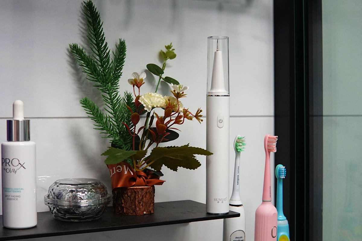 素诺洁牙仪工作时的超声波震频为200万次每分钟,声波频率高达42KHz,比常规的超声波电动牙刷高出不少。