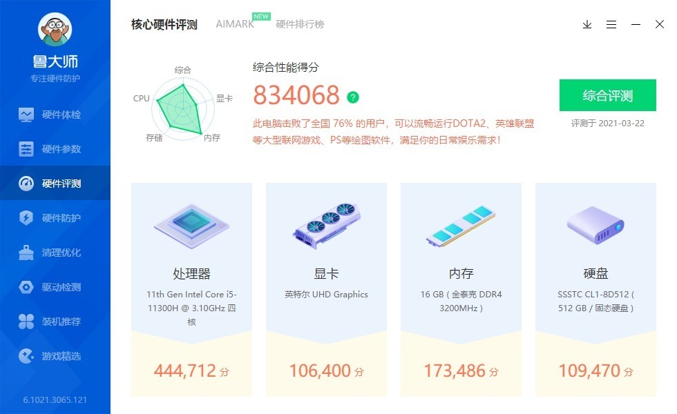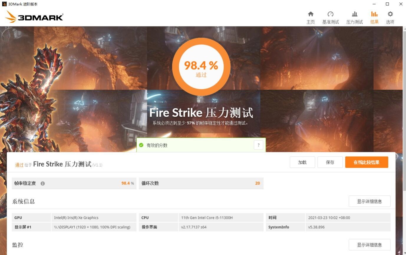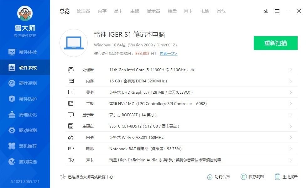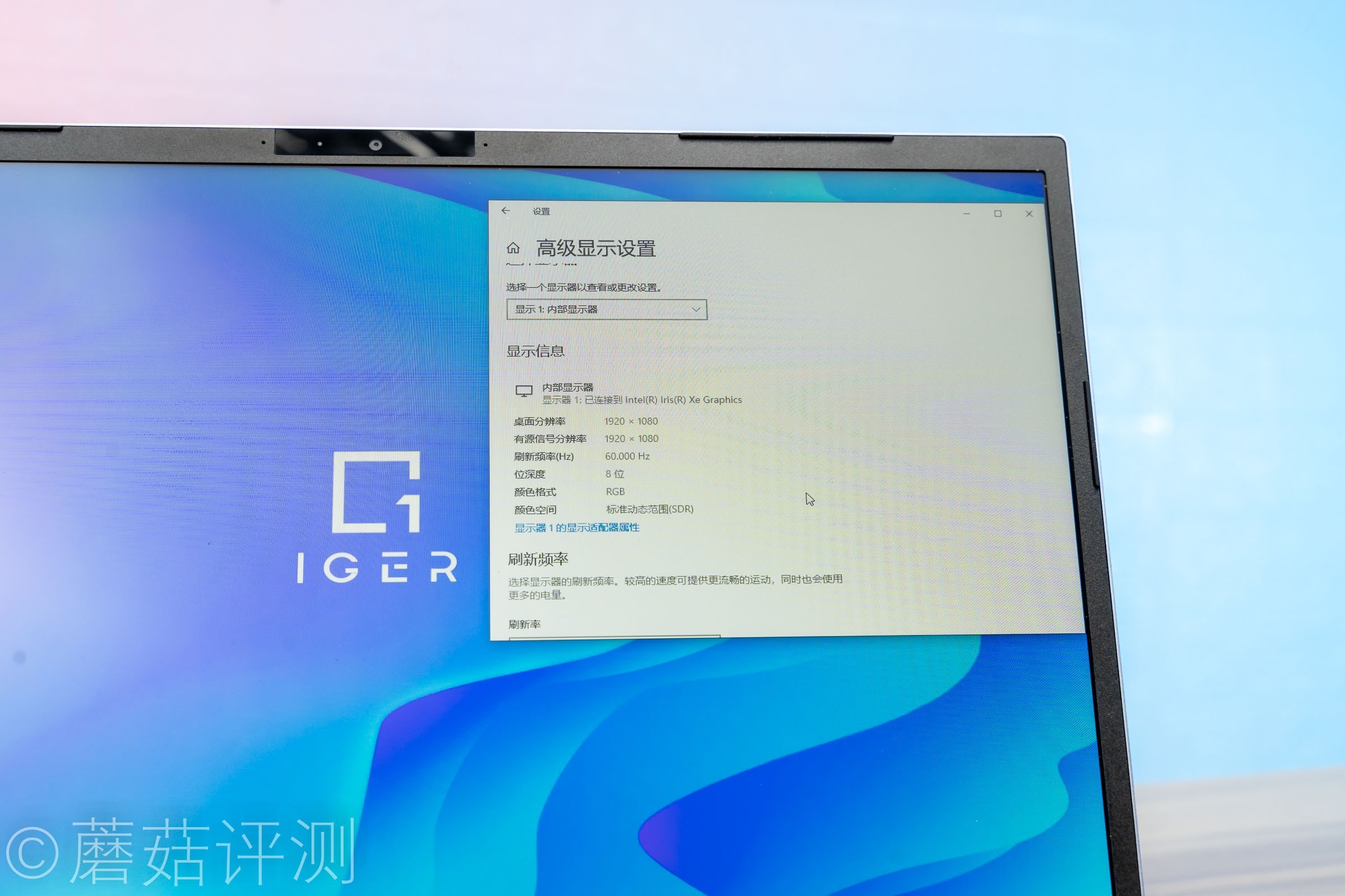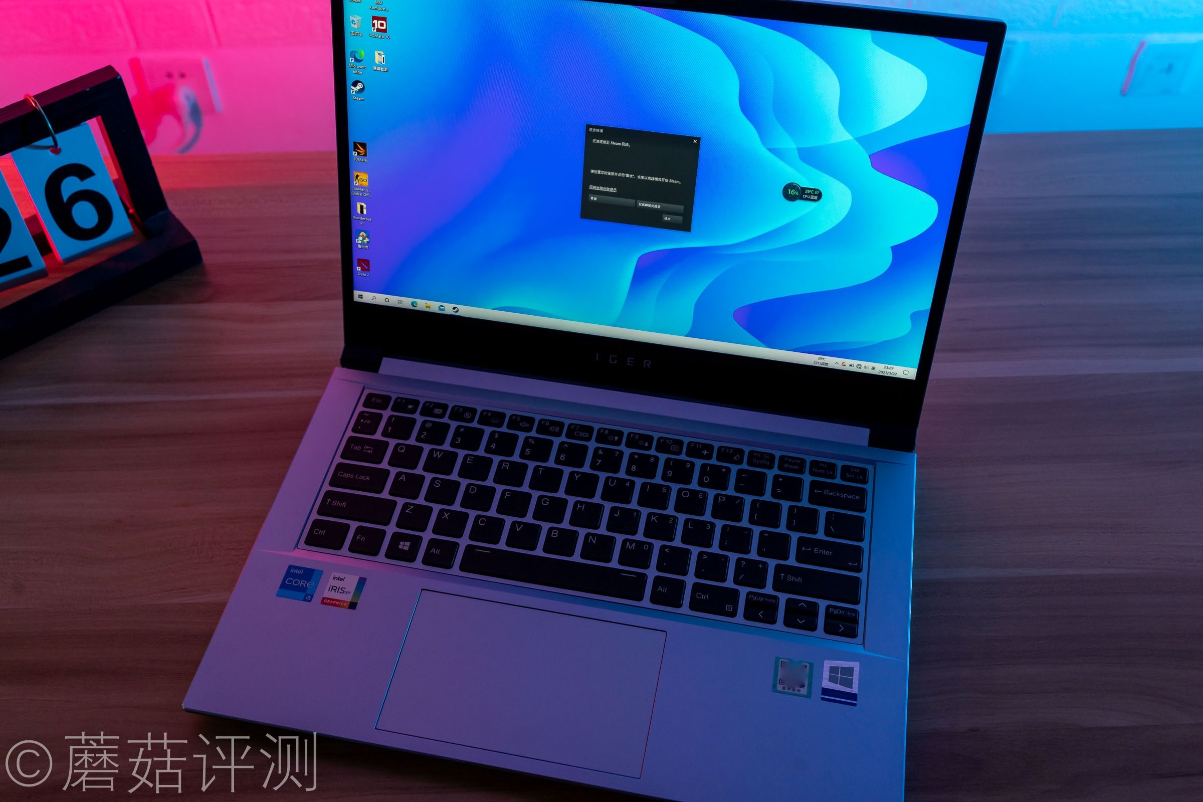 一、前言Intel 11代的移动平台处理器还是非常值得期待的,其采用了intel最先进的10nm制程工艺制造,并且集成了全新的intel Xe系列核显,让其无论是处理器性能还是显示性能,都非常出色。特别是这个Intel的Xe系列核显,听说性能非常强大,跑分成绩已经超过英伟达的MX350了,而这仅仅只是核显,其在功耗、发热方面的表现要远远优于对方。处理器性能方面,全新的intel 11代处理器在架构方面进行了升级,极大的提升了处理器的单核性能,而在日常使用电脑的场景中,单核性能是非常重要的,很多常用软件的流畅与否,其实主要看单核性能。出色的单核性能,给力的核显,再加上出色的功耗表现,这样一颗intel的11代移动平台处理器,简直就是轻薄本的最爱,可以完美契合轻薄本的使用需求。雷神笔记本就敏锐的捕捉到了这一点,推出了全新的IGER S1系列高性能轻薄本,性能、续航、发热,我全都要。二、雷神IGER S1高性能轻薄本 开箱▼到手就是一个纸箱,中间有IGER的LOGO。打开纸箱之后,内部才是笔记本的真正包装,白色的,正面有IGER的印刷装饰。▼侧面有标签,上面有笔记本的各种硬件参数。▼打开纸箱,笔记本被牢牢的夹在厚泡沫里,旁边有电源和其他的配件。三、雷神IGER S1高性能轻薄本 外观▼笔记本的外观还是非常漂亮的,整体呈现淡蓝色,A面是一整块金属,中间有一个小LOGO。▼A面边角部分的打磨非常细腻,摸上去手感不错。▼打开笔记本,整体的外观颜值还是非常漂亮的。B面是全黑的,和屏幕融为一体。C面同样是全金属材质,淡蓝色。▼B面顶部有摄像头,旁边是指示灯,两侧是阵列麦克风,保证收音音质。摄像头放顶部好评,视频会议的时候就不会是大下巴了。▼B面四边均有橡胶减震条,可以吸收震动,保护笔记本。▼笔记本的屏幕整体是窄边框设计的,除了底部的边框略宽一点。▼C面全金属的,淡蓝色,搭配黑色的键盘也挺漂亮的。▼键盘右上角并没有熟悉的开机键,而是多放了几个功能键,方便日常使用。▼键盘左下角有熟悉的intel的标志,旁边是Xe系列核显的标志。▼键盘整体的键位很大,间隙适中,日常打字不会局促。▼侧面看,键位的键程还是表现很不错的,目测应该在2mm左右,手感应该挺不错的。▼触摸板在键盘的下方,面积巨大,表面手感顺滑,四边的做工很精致。▼笔记本的右侧,是各种接口,从左到右依次为音频接口、Type-C接口、USB接口、HDMI接口、电源键、电源指示灯、DC电源接口和电池指示灯。▼左侧部分,从左到右依次是安全锁扣、网线接口、USB接口、SD卡槽和雷电4接口。▼C面中间还有凹槽设计,方便打开笔记本。▼笔记本的尾部,两侧是散热出风口。▼D面,上下均有长条形的防滑垫,中间是大面积的进风口。四、雷神IGER S1高性能轻薄本 上手体验▼笔记本的重量非常轻,实测裸机重量在1.35KG左右,非常轻盈。▼搭配原装电源适配器的移动重量在1.66KG左右。▼但如果选择合适的Type-C适配器的话,移动重量可以控制在1.5KG左右,这个重量表现可以说是非常优秀了。▼开机,中间还是熟悉的小LOGO。▼屏幕点亮之后,默认壁纸也是蓝色的,和蓝色的笔记本机身很搭。▼笔记本屏幕是雾面屏,边框表现也非常不错,整体观感很棒。▼笔记本键盘自带键盘背光,支持五档调节。▼默认不开键盘背光的状态。▼开启键盘背光,可以清晰的看到键位上的字母,方便打字。▼这块屏幕是1080P分辨率的,14英寸,整体的显示效果非常棒,屏幕色域有100% sRGB,色彩表现也很不错。▼键盘部分,自带键盘的键位面积很大,键位之间的间距合适,日常打字很舒服。▼简单的按下体验,键位键程比常见的轻薄本要长很多,感觉有1.8mm左右,触底反馈也十分清晰。日常用这个键盘打字,体验应该会很不错。▼雷神IGER S1支持DC和Type-C两种电源输入,笔记本的右侧有DC电源接口。▼另一侧的雷电四接口支持供电输入,支持PD快充。日常功耗在25W左右,充电加高负载的情况,输入功耗会去到55W左右的样子。五、雷神IGER S1高性能轻薄本 性能测试▼鲁大师简单看下整体配置,处理器是intel的11代i5 11300H,内存是双通道3200MHz的16GB内存,显卡是intel的Xe核显,固态是M2固态,无线网卡是intel的AX201,支持Wifi 6。▼简单跑个测试,整机得分83.4W,其中处理器44.4W,显卡10.6W,内存17.3W,硬盘10.9W,成绩均非常不错。▼i5 10300H,四核心八线程,三级缓存8MB,工艺制程10nm。单核最大睿频4.4GHz,多核最大睿频4GHz,性能很不错的一颗处理器。▼简单跑个测试,单核543、多核2600,不错。▼R23测试,单线程1377,多线程5959,这个性能表现,对于一款定位轻薄的笔记本来说,已经非常不错的,毕竟成绩已经非常接近intel的桌面级i7 7700K处理器了。▼内存是双通道16GB内存,频率3200MHz,CPU-Z这里显示的不太正确。▼在win10自带的任务管理器内,可以清楚的看到内存是双通道16GB的,频率3200MHz。▼简单跑个读写测试,读取和写入均可以去到46000MB/s以上,速度表现不错。内存的性能会直接影响到核显性能的发挥,因此双通道的高频内存是必须的。▼固态硬盘是一块SSSTC的CL1固态硬盘,容量512GB,接口是PCIe 3.0 x 4的。可能很多小伙伴对SSSTC不是太熟悉,其实这是铠侠(原东芝存储)旗下的品牌,偏向于OEM市场。▼简单跑个测试,顺序读取2000MB/s、写入1600MB/s,4K读取37MB/s、写入220MB/s,整体的性能表现还是挺不错的。▼显卡是intel的Xe系列核显,显示的EUs数量96,理论上应该是80,频率最高1.3GHz。▼简单跑个3D