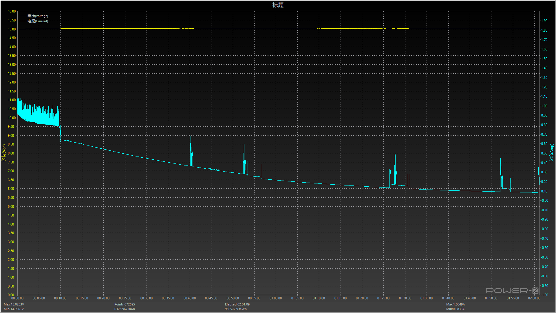 首先是给switch做了充电数据的检测。switch支持15W PD快充的,我在游戏机剩余电量55%时开始做了测试,插上Aohi Magcube 30W顺利握手PD协议快充,充电10分钟后开进进入涓流模式,电流开始缓降,这个过程持续了1小时50分钟。从60%充到100%一共花了1小时50分钟。
