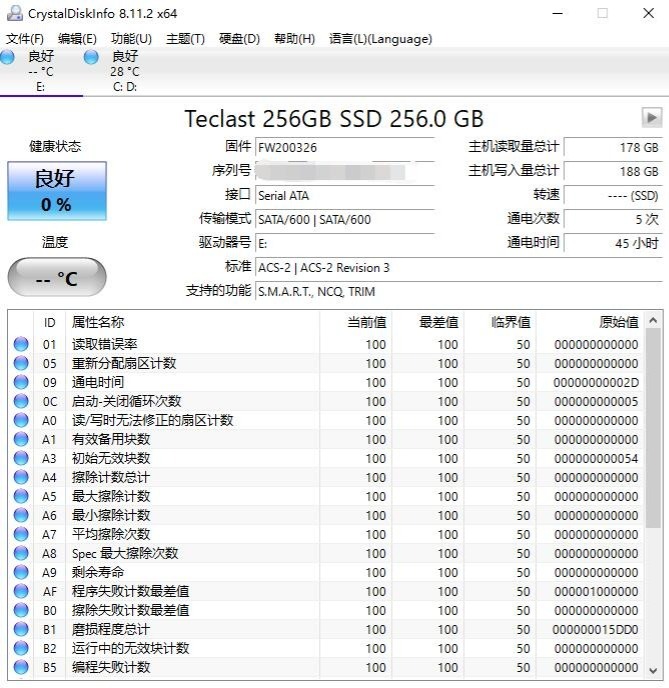 一、前言前两天蘑菇朋友找到我,想帮他女朋友上大学时候的电脑处理一下,简单的清个灰、换个固态、加个内存之类的,就留着平时看个视频、追个剧了。她那个电脑蘑菇简单的看了一下,确实是比较老的笔记本了,整体只有一个SATA接口,并没有现在比较“新潮”的M2接口,想要升级固态,就只能更换了。到时候换个固态,清个灰,重装个系统,应付轻度的播放视频之类的需求,基本问题不大。朋友并不是想花太多钱来处理这台电脑,已经是老电脑了,简单的收拾收拾就行。于是蘑菇就买了一块台电的稳影系列固态硬盘来给他升级,2.5英寸的SATA固态,性价比高。二、台电(TECLAST)稳影系列固态硬盘 开箱▼固态硬盘的包装很简单,就一个纸盒。▼纸盒全黑设计的,中间有固态硬盘的外观。这块固态硬盘的名字很有意思,英文名叫“Win- In”,中文名叫稳影,谐音名稳赢,哈哈。▼包装背面介绍了固态硬盘的其他信息,中间还有开窗。▼包装侧面印着硬盘的规格和接口的规格,2.5英寸的SATA盘,接口是SATA3.0的。▼打开纸盒,固态硬盘就放在透明塑料壳里,旁边还有一本说明书。三、台电(TECLAST)稳影系列固态硬盘 外观▼固态硬盘的外观还是挺漂亮的,铝合金的外面,表面有淡蓝色的磨砂喷涂,中间是台电的LOGO,下面是固态硬盘的系列名称。▼硬盘的背面是标签,将固态硬盘的容量等参数标的很清晰。▼固态硬盘的侧面还有防拆贴纸,防止拆卸。▼金手指很新,看着还行。四、台电(TECLAST)稳影系列固态硬盘 拆解▼固态硬盘到手二话不说,先拆开看看颗粒是啥。▼拧掉一颗固定螺丝,固态硬盘就可以轻松打开了。▼硬盘外壳的内部还贴有绝缘塑料片,细节处理的还行。▼另外一侧就是PCB了,看着很小巧。▼拧掉固定螺丝,就可以将PCB拆掉,上面可以看到有主控和存储颗粒。▼靠近看看,主控是得一的一款SATA主控,这款主控最近在国产固态中用的还是挺多的,性能表现还行。▼旁边是存储颗粒,看这个丝印貌似是镁光的颗粒。这个价格还能买到镁光的原厂颗粒,还是挺不错的。五、台电(TECLAST)稳影系列固态硬盘 安装▼用之前先来测试一下,装上电脑试试效果。▼内存是扎达克的SPARK,8G*2 3600 MHz。扎达克的这套内存还是挺不错的,外观设计的很漂亮,马甲还采用了两种不同的材质,顶部是银色的,中间是黑色的,RGB灯带是多段式的,内存条的顶部和侧面都有。▼然后内存条的顶部的灯带是一整条,看着效果还挺不错的。▼电源是鑫谷的昆仑850白金牌全模组电源,这款电源的颜值还是非常漂亮的。透过安钛克DF700机箱电源仓侧面的开口,可以清晰的看到电源侧面的昆仑山脉的剪影,很漂亮。▼电源标配模组线是亮银色的,颜值还是非常漂亮的,线材的手感还非常软,走线啥的都非常方便。▼电源的尾部除了有电源插口和开关之外,还有一个小小的控制电源散热风扇的开关。这个开关可以控制电源散热风扇的i-Stop功能,也就是低负载停转功能。想要静音还是散热,就看你个人的需求了。▼机箱是安钛克的DF700 Flux,机箱前面有大面积的金属冲孔网,并且还有特殊的造型弧度设计,看着还挺不错的。▼前面还有一个金属的安钛克的LOGO,看着质感挺不错的。▼机箱背面有两个2.5英寸的硬盘安装位,支持快拆。▼台电这块固态硬盘可以轻松固定。▼开机,一次点亮,整机效果还挺漂亮的。▼关灯的效果会更好看一些。▼水冷是乔思伯的光影240白色版,冷头的灯效是镜面光影的,看着很漂亮。▼内存的顶部的RGB灯带是一长条,效果不错。▼内存条的侧面还有多段式的RGB灯带,看着挺漂亮的。▼整机效果,安钛克DF700 Flux这款机箱前面的金属冲网孔搭配幻彩风扇会特别漂亮,效果非常赞。六、台电(TECLAST)稳影系列固态硬盘 测试▼全新的固态硬盘,插上之后我的电脑里面是没有的,需要初始化一下。▼标称256GB容量,实际可用容量在238GB,还是可以的。▼简单看下参数,这个Diskinfo读不到硬盘的温度和寿命等数据,下面显示寿命100,上面还是0%。其余参数没问题,接口为SATA3.0。▼简单跑个AS SSD测试,顺序读取378MB/s、写入336MB/s,4K方面,读取25MB/s、写入62MB/s,还行吧。毕竟这是一块单存储颗粒的,容量256GB的固态硬盘。▼将测试文件从1GB提高到10GB,整机性能表现波动不大,多线程的4K成绩有一些下降,不过那个正常用不到。▼换用DiskMark测试,顺序读取在400MB/s左右,写入357MB/s,4K读取26MB/s、写入63MB/s。▼将测试文件从1GB换成8GB,整体的测试数据波动不大,挺不错的。▼最后持续读取写入50GB,可以看到读取速度表现很稳定,基本稳定在390MB/s左右,写入速度略有波动,但是平均也有340MB/s左右。七、总结台电这块稳影固态还可以,主要就是性价比特别高,朋友买这块固态的原因主要就是因为价格便宜。拆开之后看到,存储颗粒还是镁光的,感觉有赚到,不过只有一颗,如果是两颗128GB的就更好了。性能测试部分,综合表现还行吧。看惯了各种M2 NVMe固态的速度,会感觉到SATA固态的速度特别慢,但其实也还行,日常使用也会挺流畅的。并且256GB的一个容量,正好适合装个系统,然后随便装点软件,平时看看视频之类的,没啥问题。谢谢大家!The End