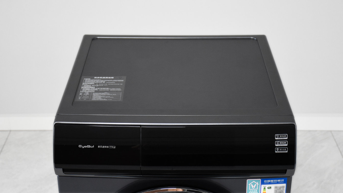凭着对云米产品的了解,EyeBot系列的定位属于高端产品线,比如那台售价一万多的油烟机至今让我印象深刻。同系列的洗衣机这边云米也下了不少功夫打磨,并为它的配色取了一个非常诗意的名字,叫做云墨蓝。视觉上看上去就像是深蓝色墨水写下字迹的颜色,接近于黑蓝色,沉稳内敛。