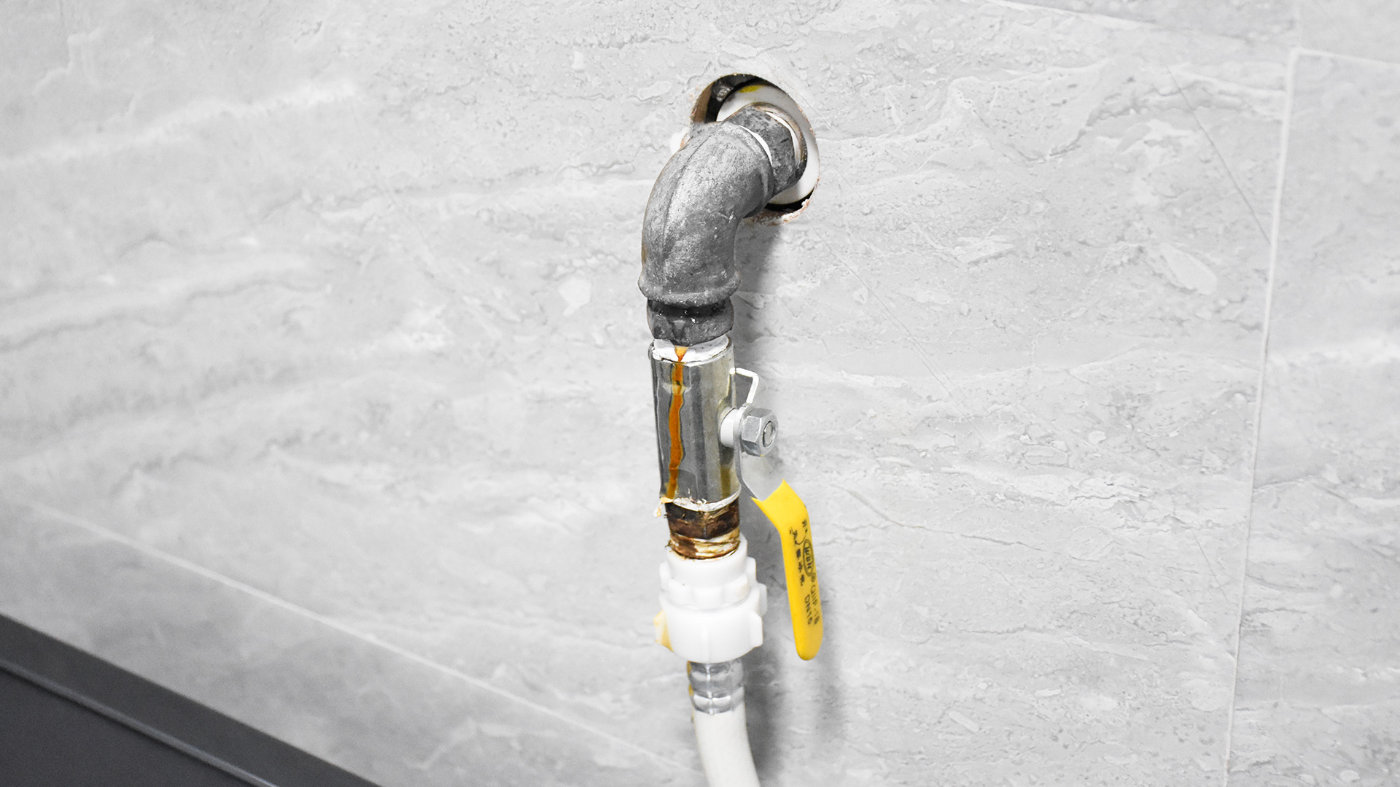 直头的一端和卫生间的水龙头连接,我这里装的是4分管外螺纹水龙头,加装一个弯头让水管与墙面保持平行。