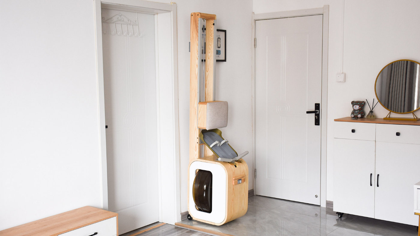 如有外出或者是一段时间不用的话,也可以利用滚轮将机身立起来放置,头部朝下,占用空间只有一张椅子的大小,推到家里的任何一个角落就可以。
