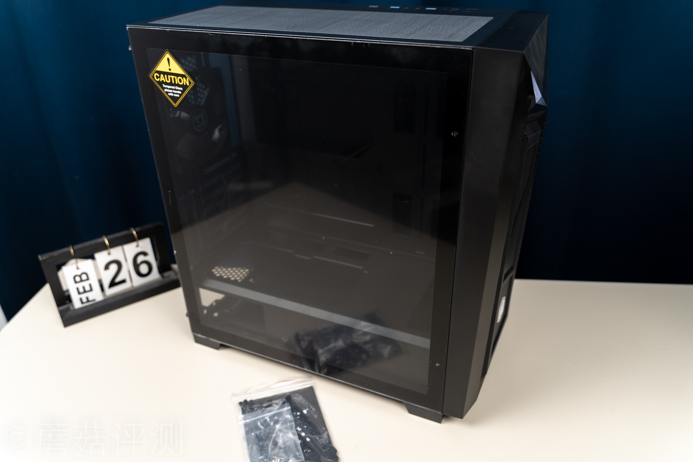 ▼机箱的外观乍一看挺漂亮的,机箱侧面有一块大面积的侧透玻璃。