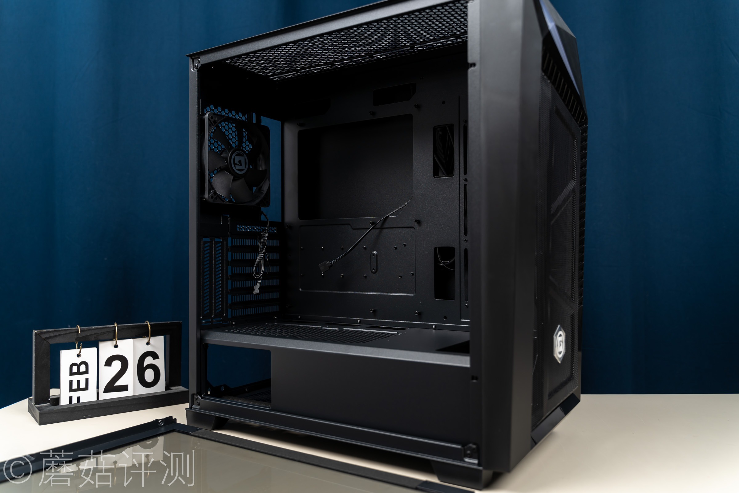 ▼打开机箱的侧面玻璃盖板,可以看到机箱内部的空间很大。
