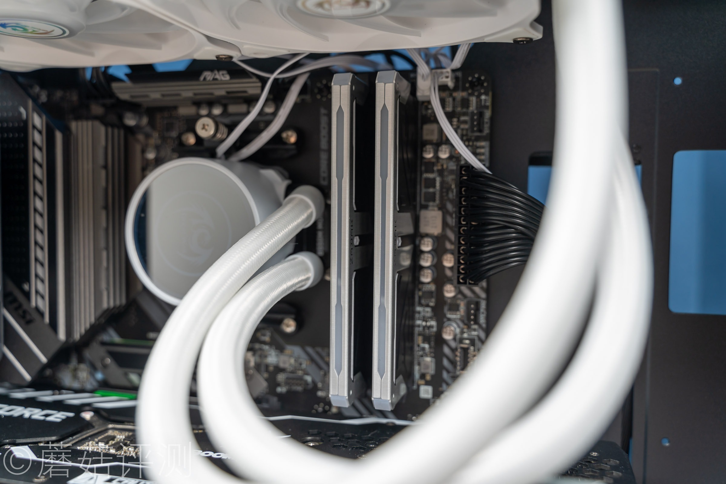 ▼主板固定很简单,水冷排直接安装到机箱上部,空间很充足。