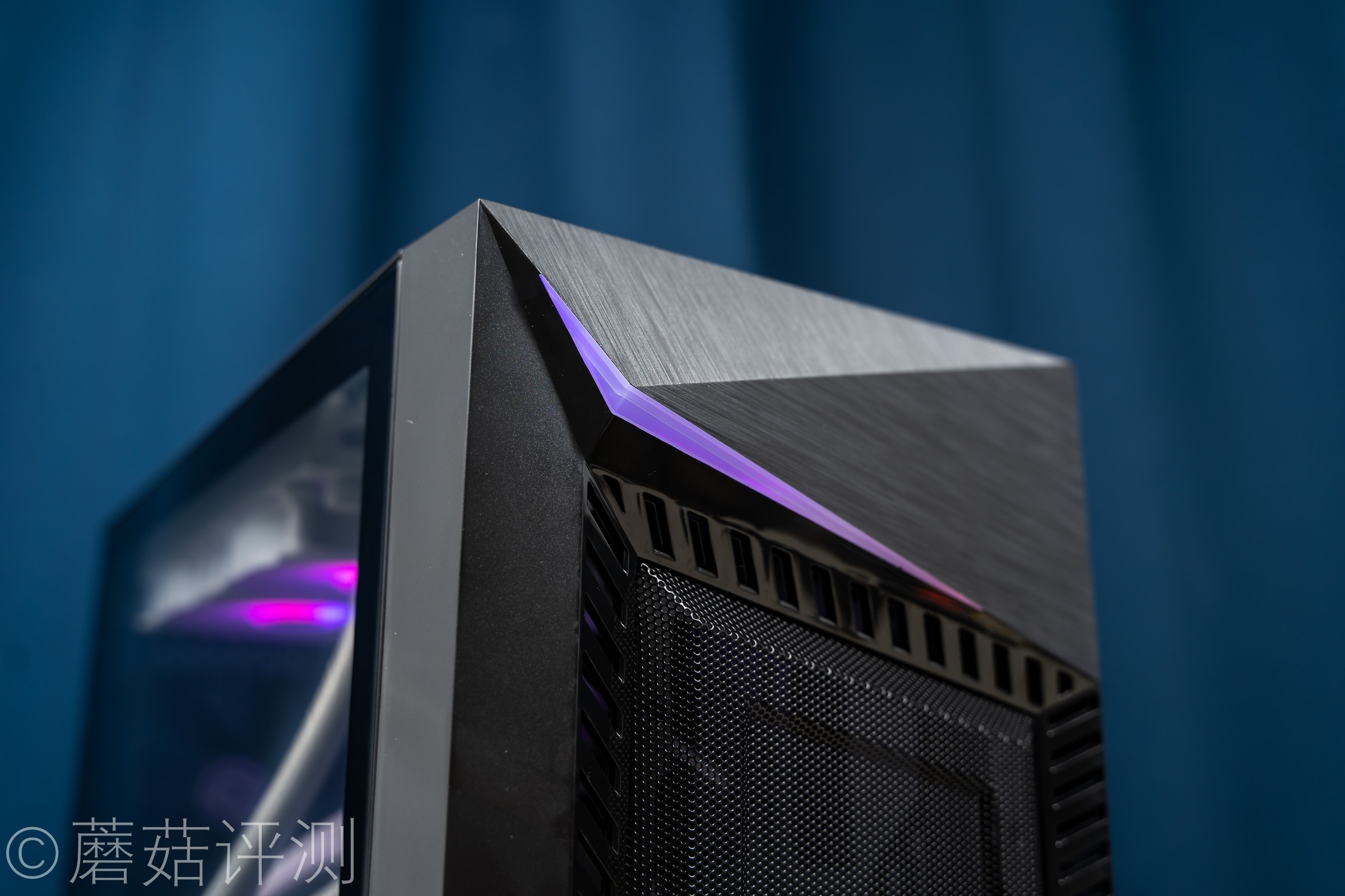 ▼机箱前部的灯带有画龙点睛的效果,还支持幻彩ARGB灯效,看着很漂亮。