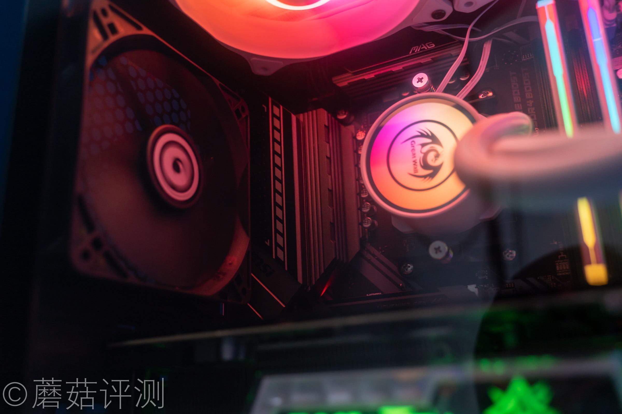 ▼水冷是长城的战龙240,冷头的发光面积很大,效果不错。