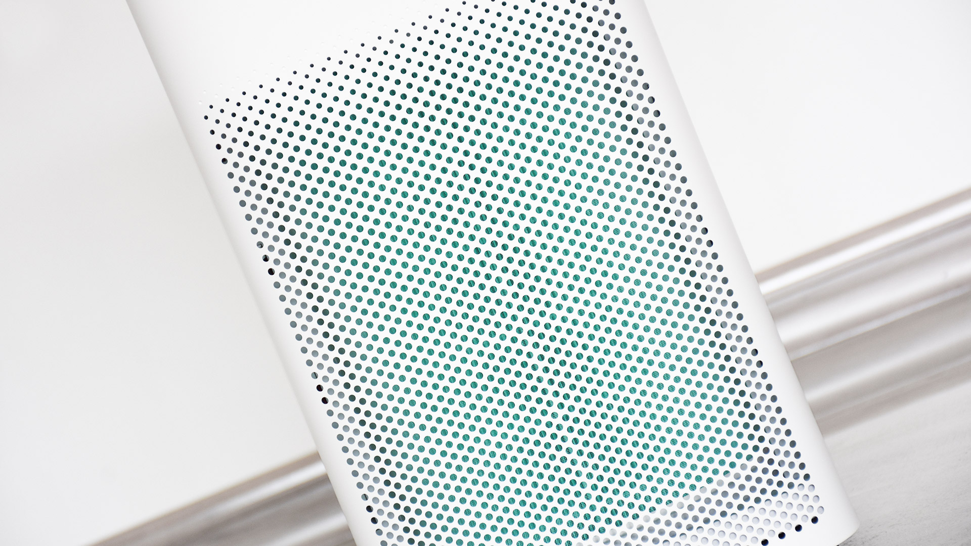 设计也是米家产品主打的卖点之一,整个机身下半部分四周都是小的圆孔滤芯格栅,透过格栅还能隐约看到里面绿色的滤芯,增加进风面积的同时也起到一定的装饰性作用。