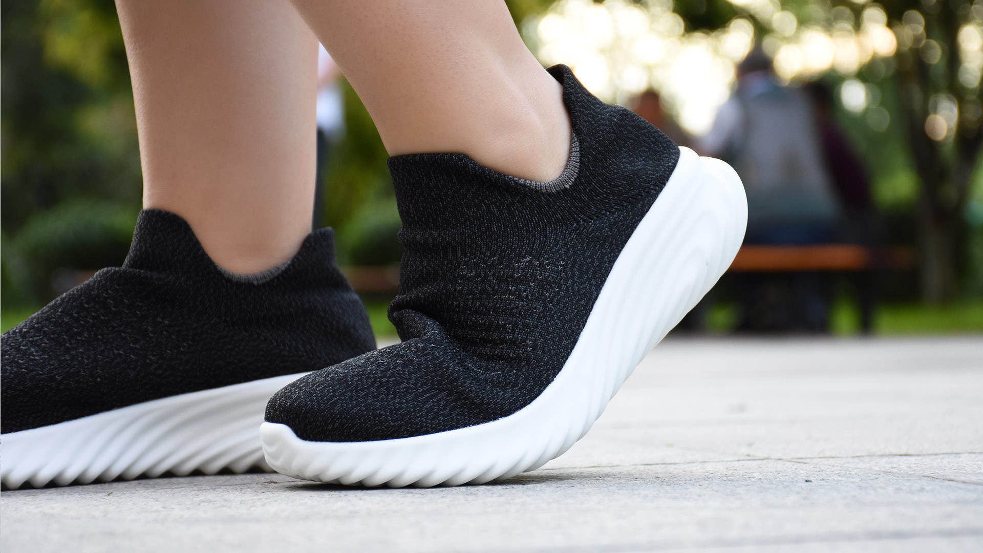 FREETIE袜套健步鞋2分为基础版和运动版,我选择的是基础版。两个版本区别不大,基础版属于一脚蹬,运动版需要系鞋带,其他设计都是一样的。