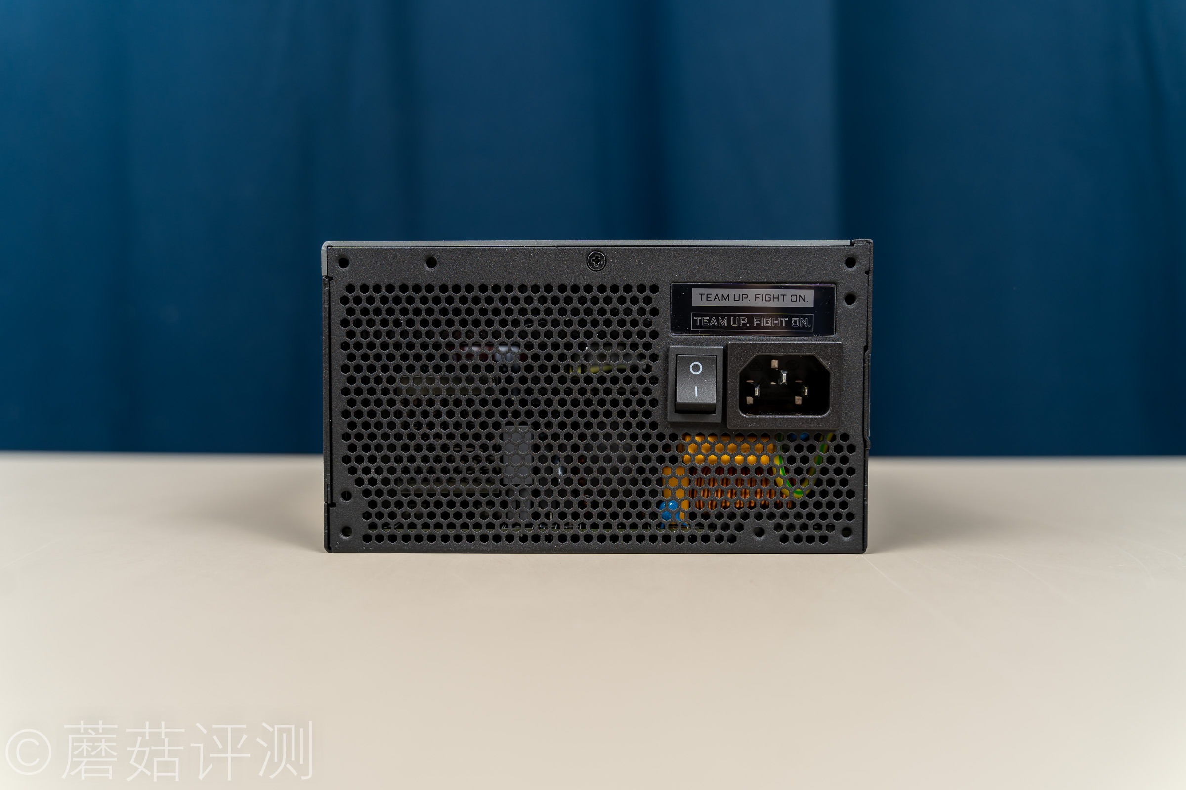▼电源尾部有电源输入接口,旁边有一个开关。开关上面还有一个铭牌,看起来像是有灯效的样子。