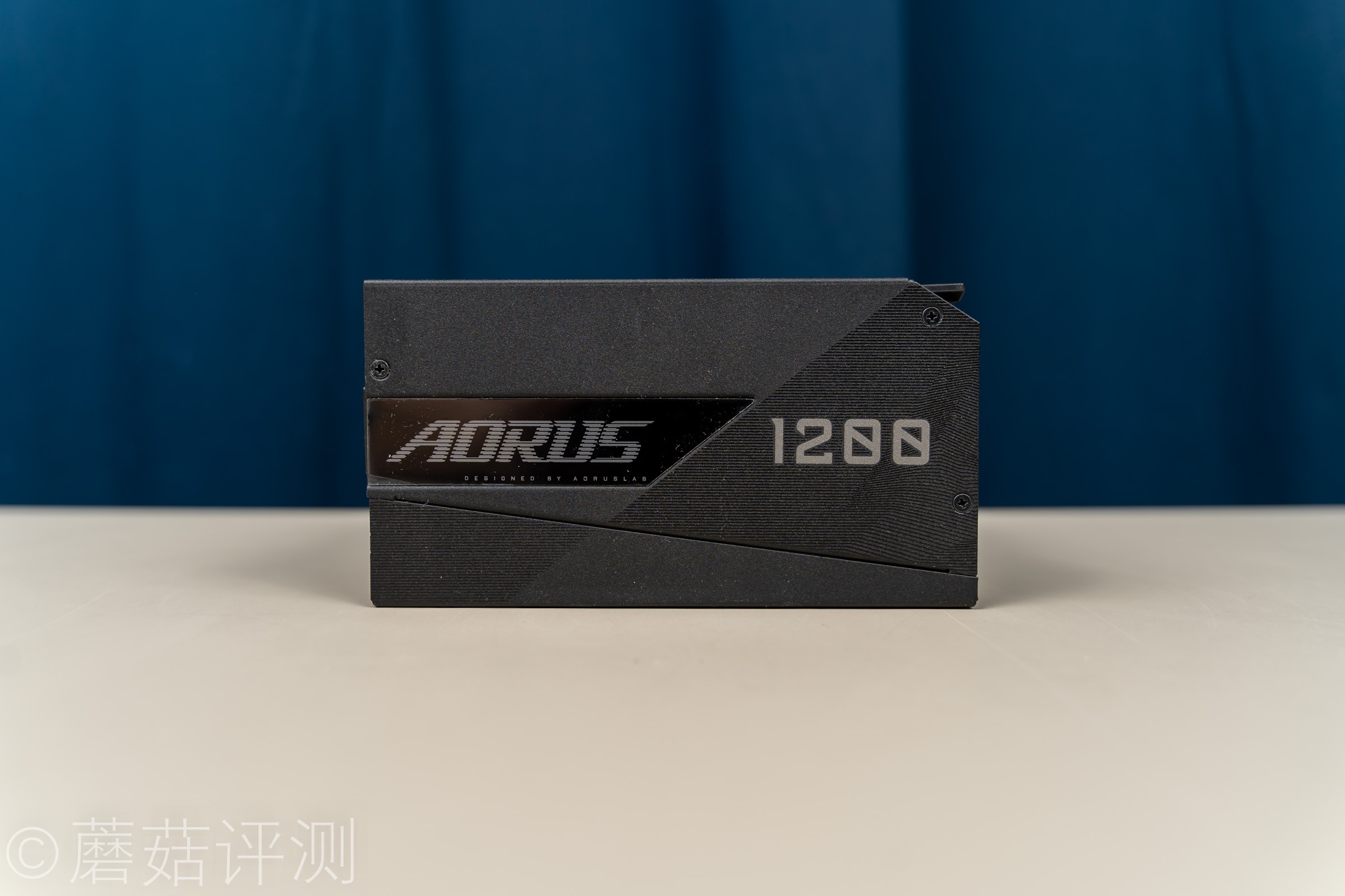 ▼电源的侧面有技嘉的LOGO,是有灯效的,旁边有1200的字样,告诉用户这款电源的额定输出功率在1200W。