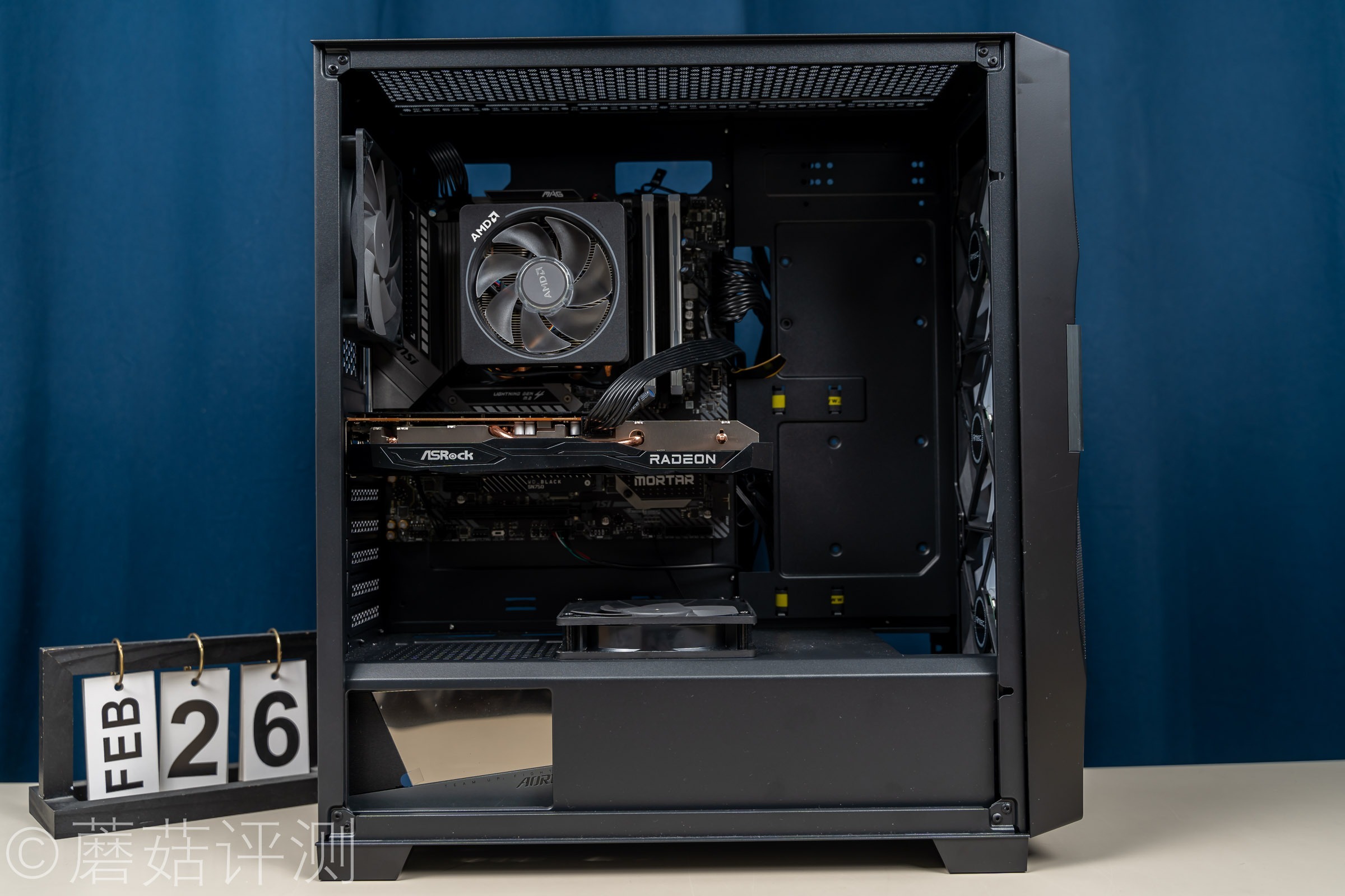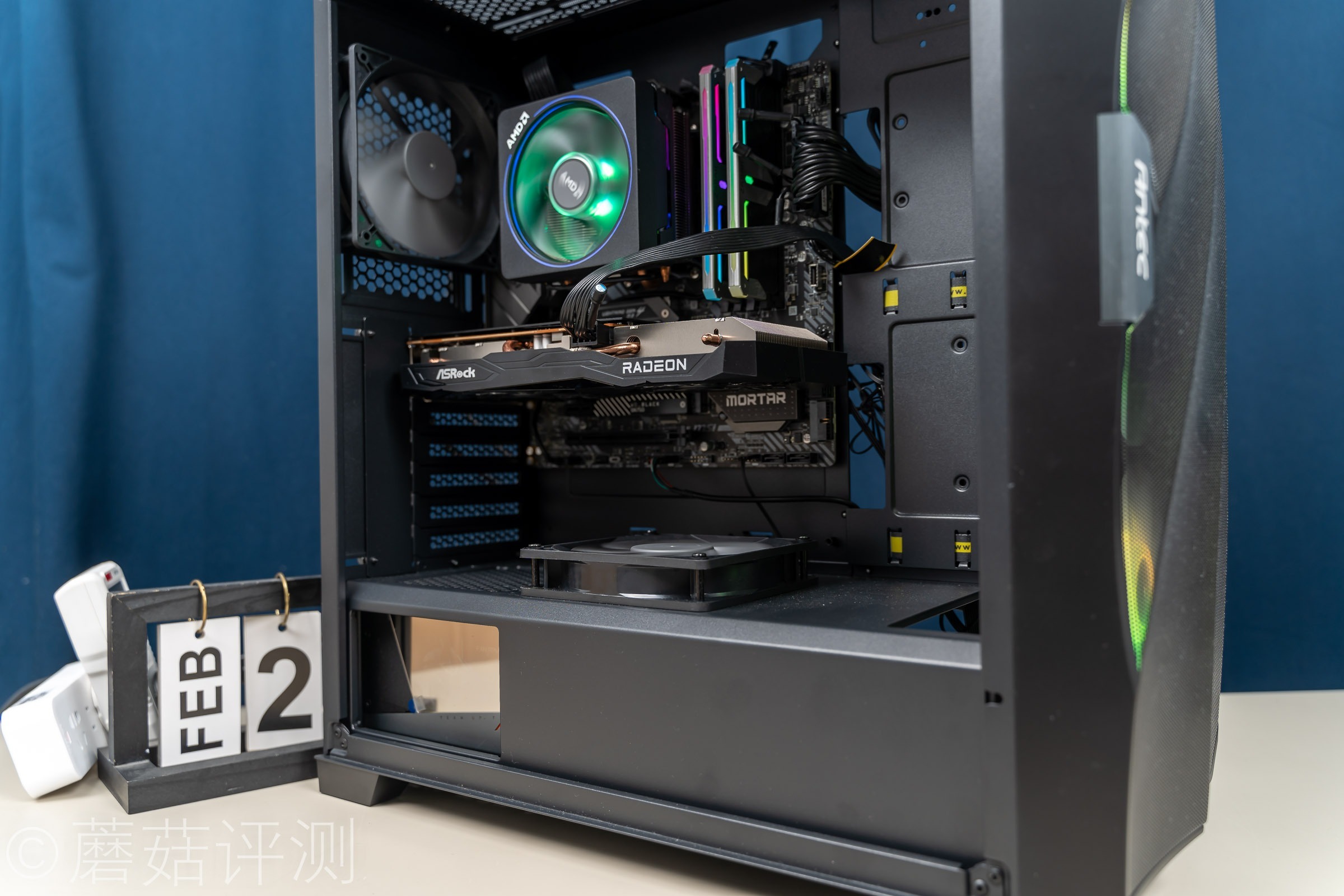 ▼另外这款机箱的电源仓上部可以固定机箱风扇,单独照顾显卡部分的散热。