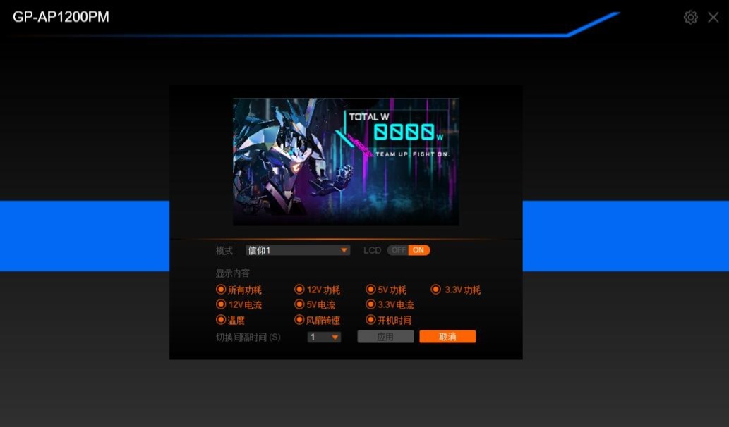 ▼技嘉这款电源的灯效部分是支持软件控制的,RGB灯效和屏幕是分开独立控制的,灯效部分可以和主板、内存等其他硬件联动。
