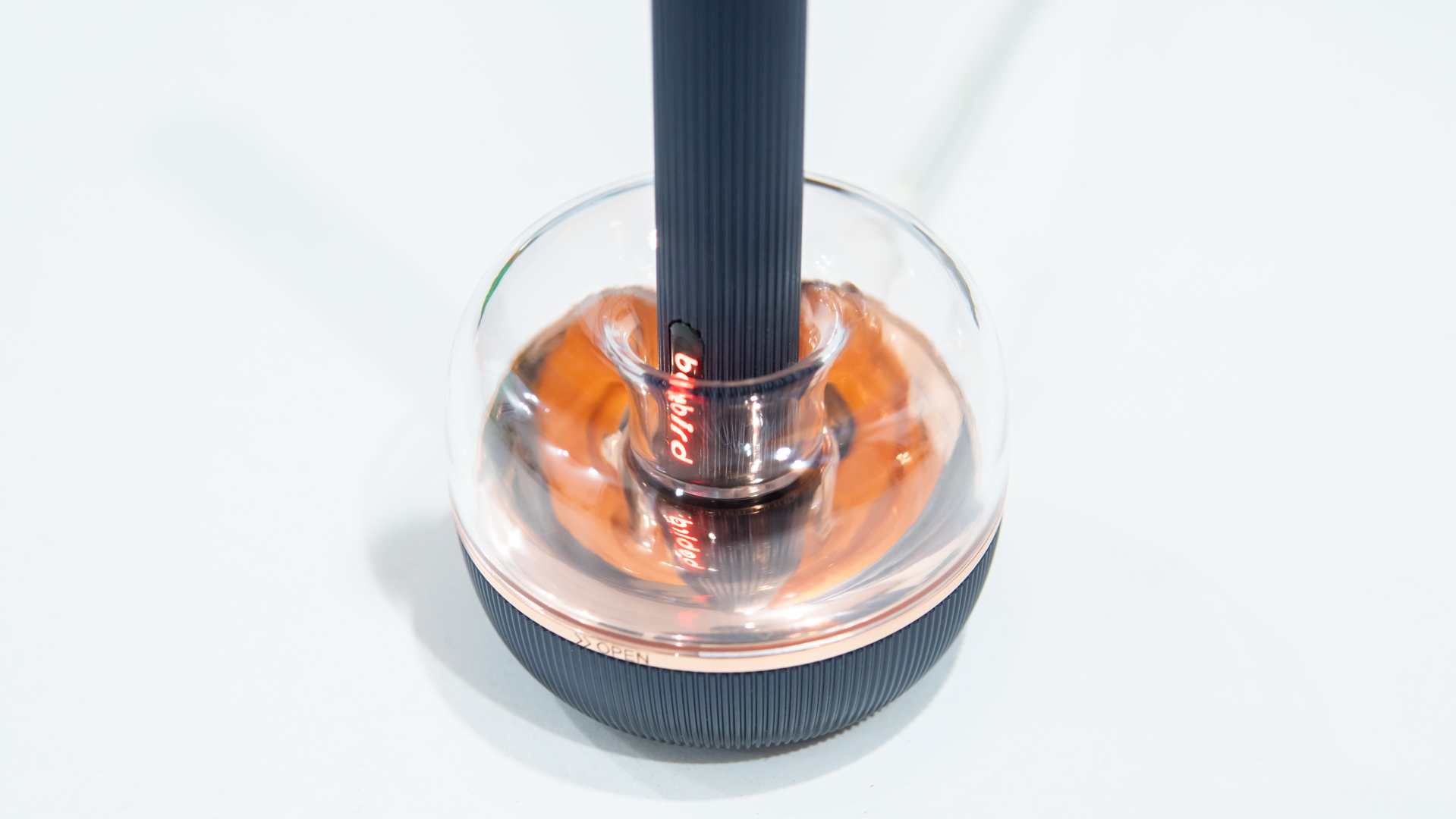 采耳仪的充电口位于握柄底部,充电时直接与充电底座相连即可。
