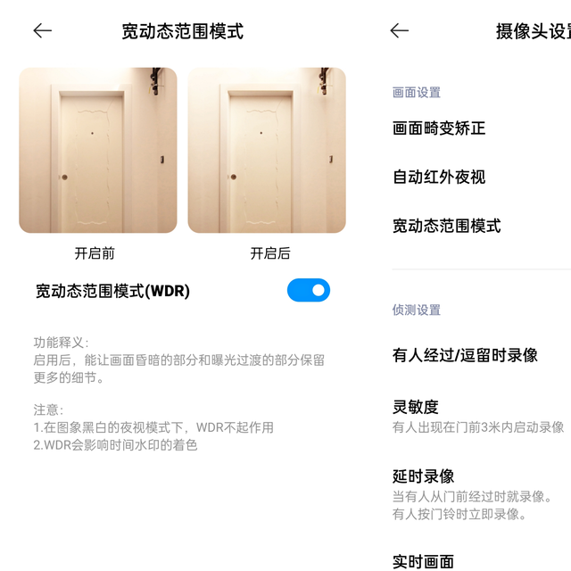 以及摄像头设置、画面设置、侦测灵敏度设置
