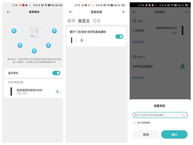 蜡笔手头是青萍网关,折腾一番安装到位后,在门锁中设置智能场景即可实现远程控制和联动。