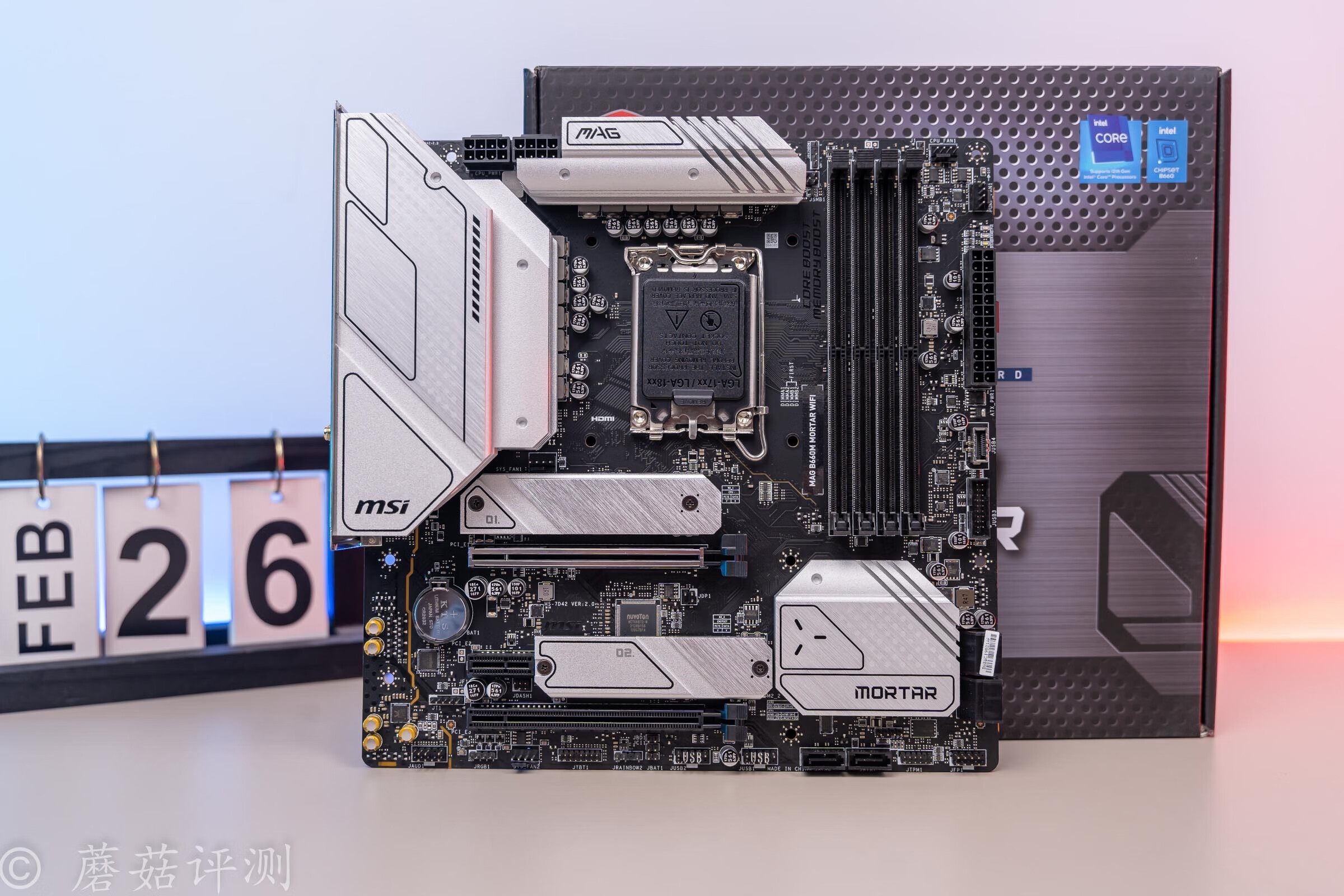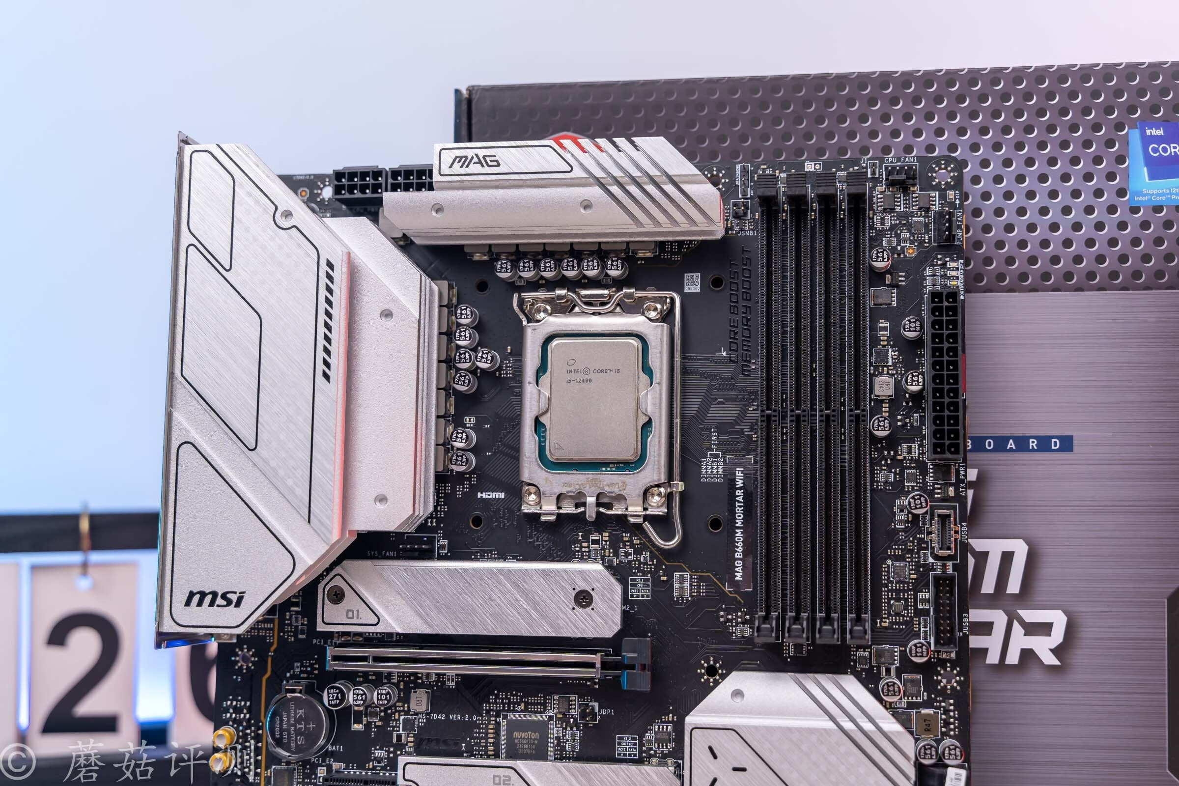 ▼主板方面,朋友选择了微星的B660M迫击炮Wifi,DDR5版本。B660M迫击炮是这个价位一个不错的选择,D5内存方面,完全就是看中了其生产力方面的优势。