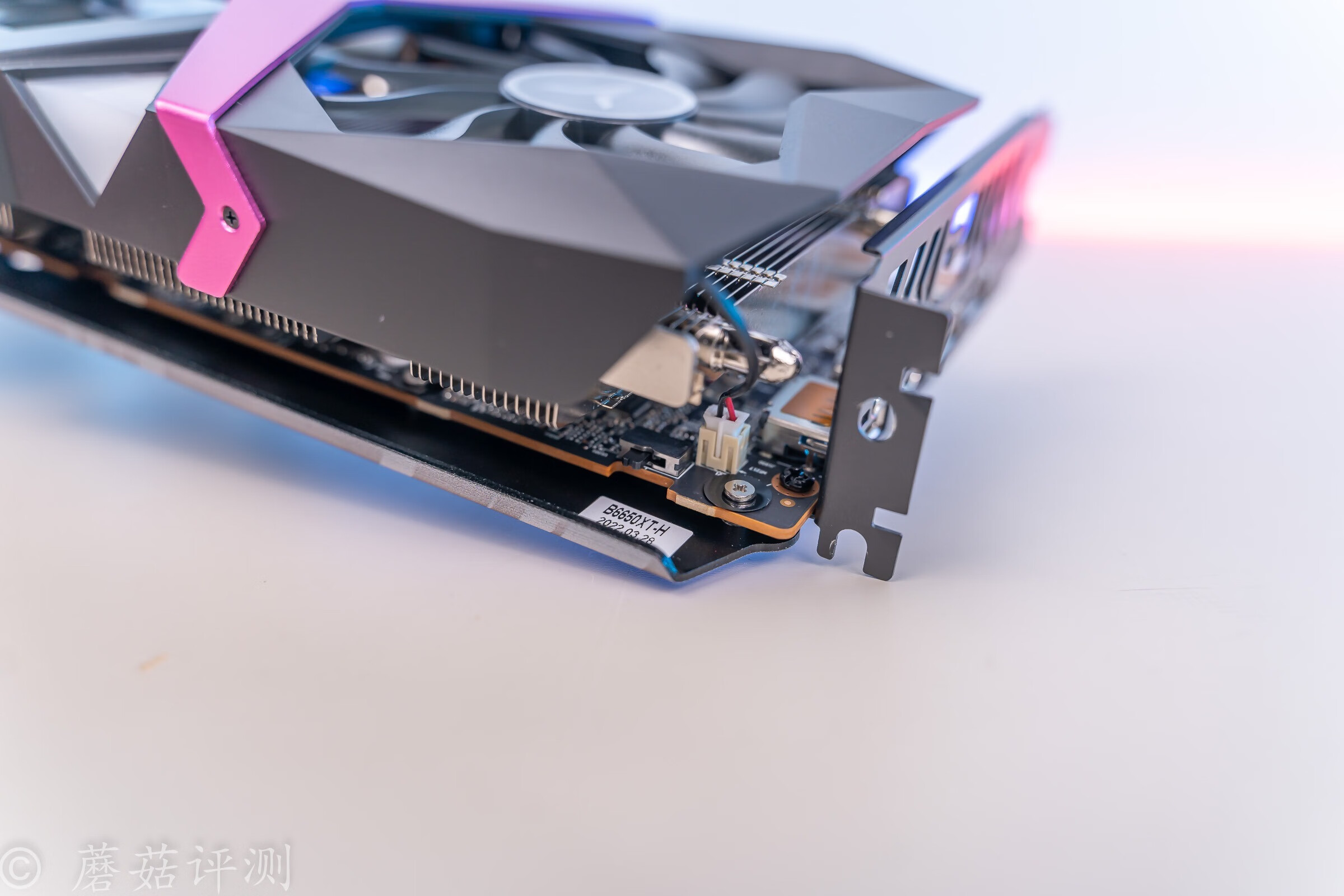 ▼盈通RX6650XT游戏高手显卡的侧面有漂亮的灯效,默认是紫色、呼吸的,看起来不错。