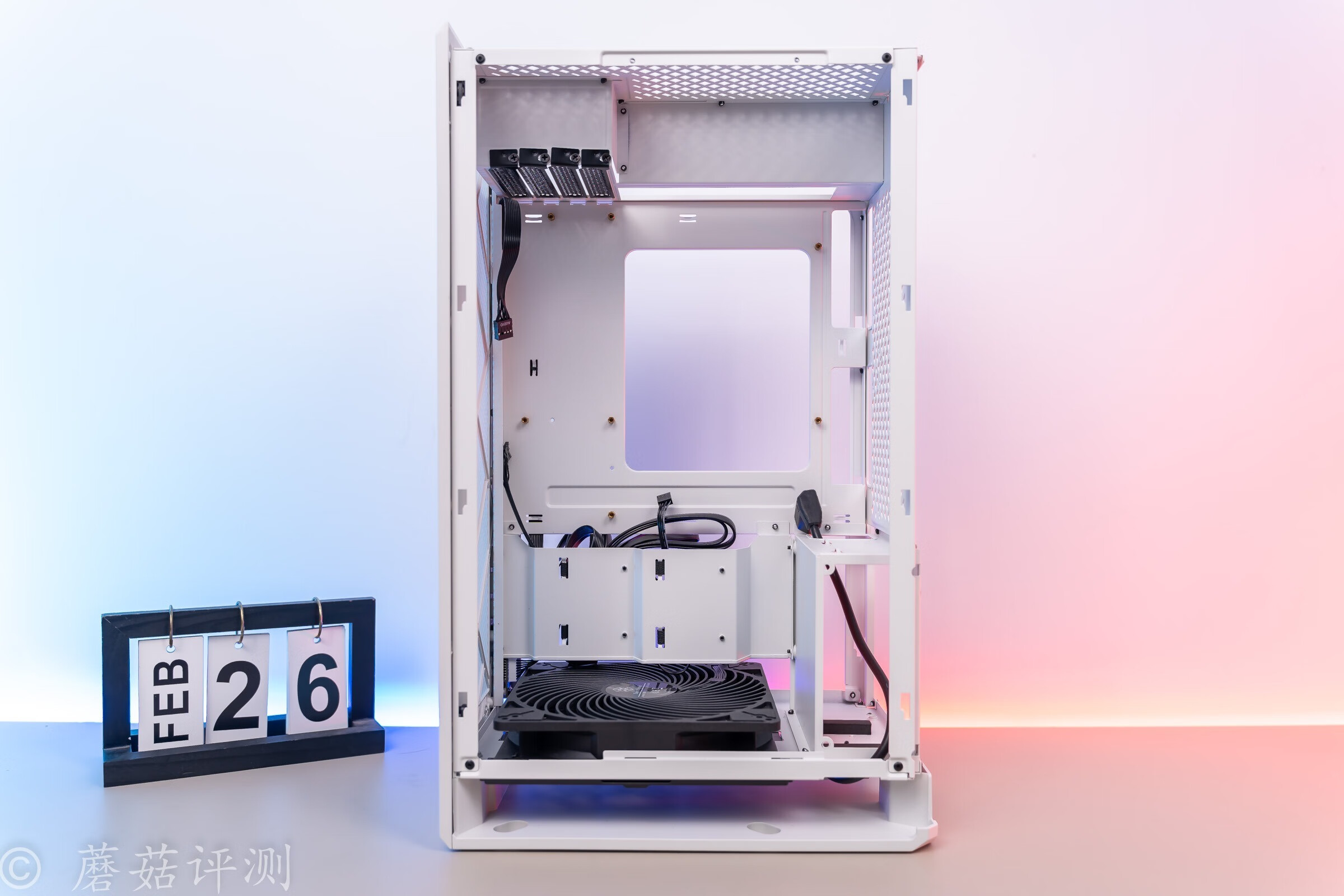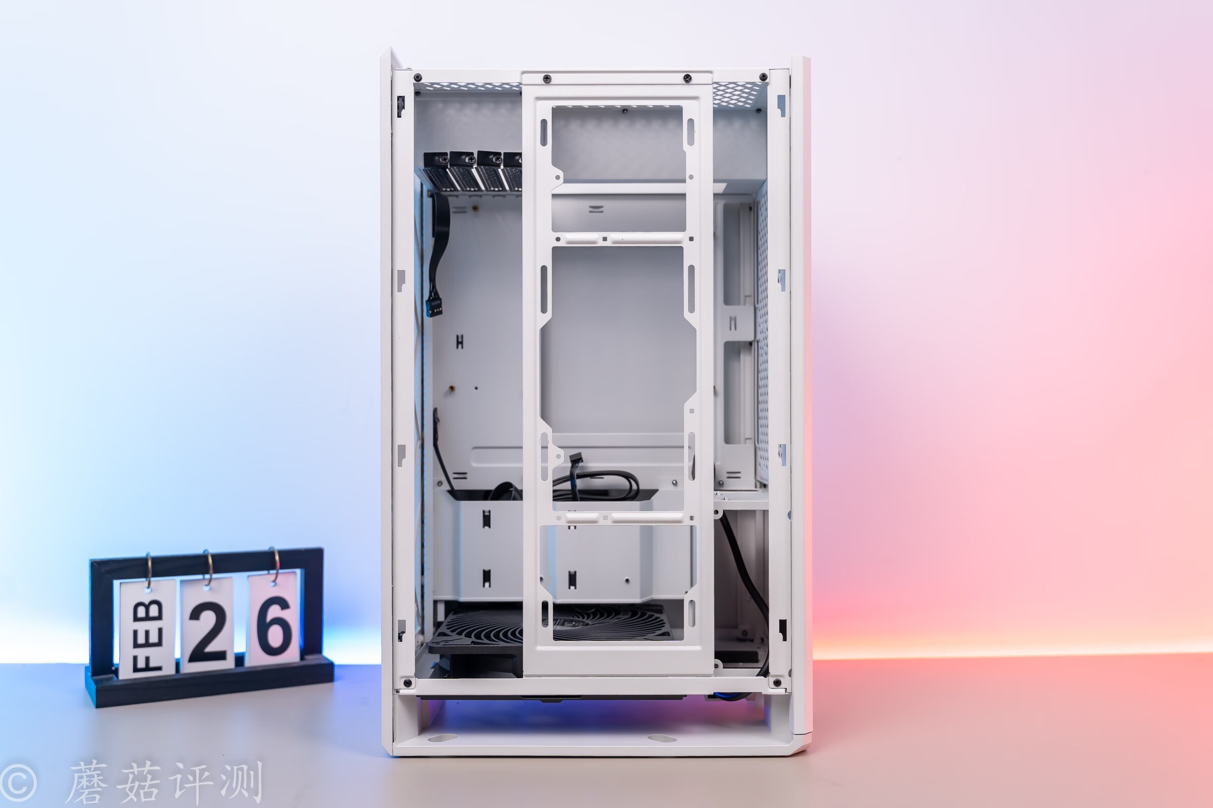 ▼机箱的内部接口设计的非常有意思,主板右上固定,显卡竖装,从而获得更加出色的占地面积。