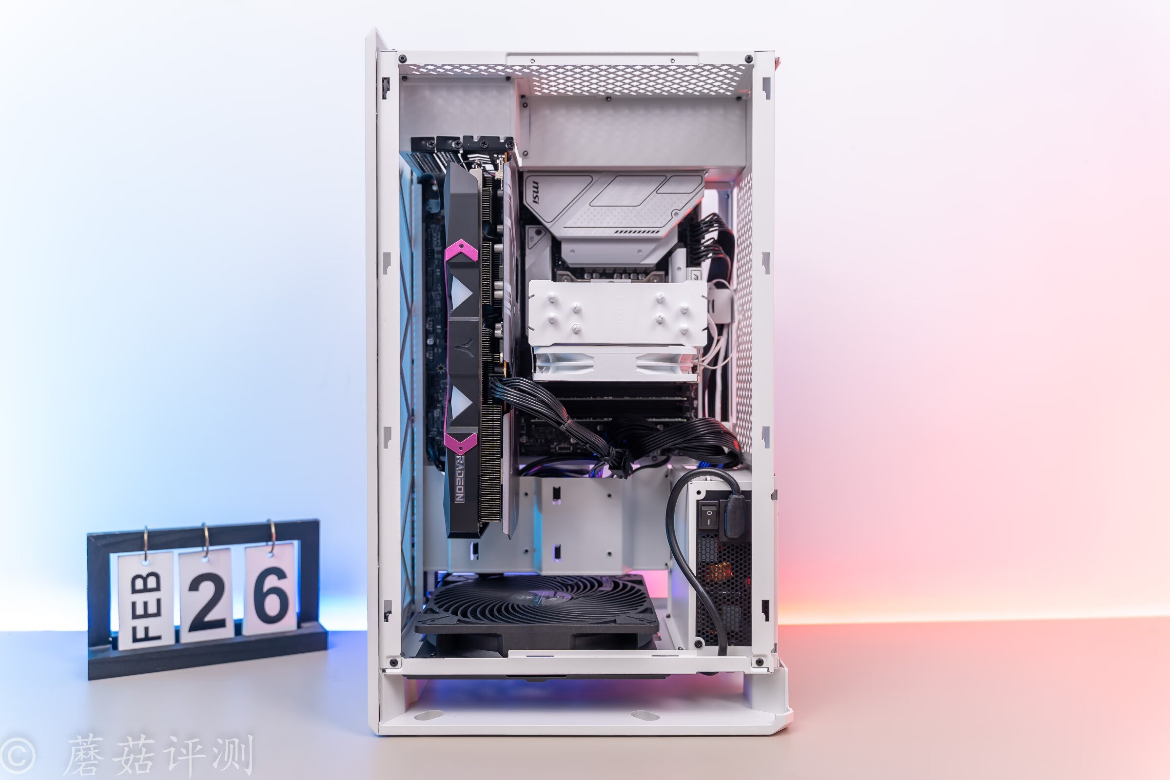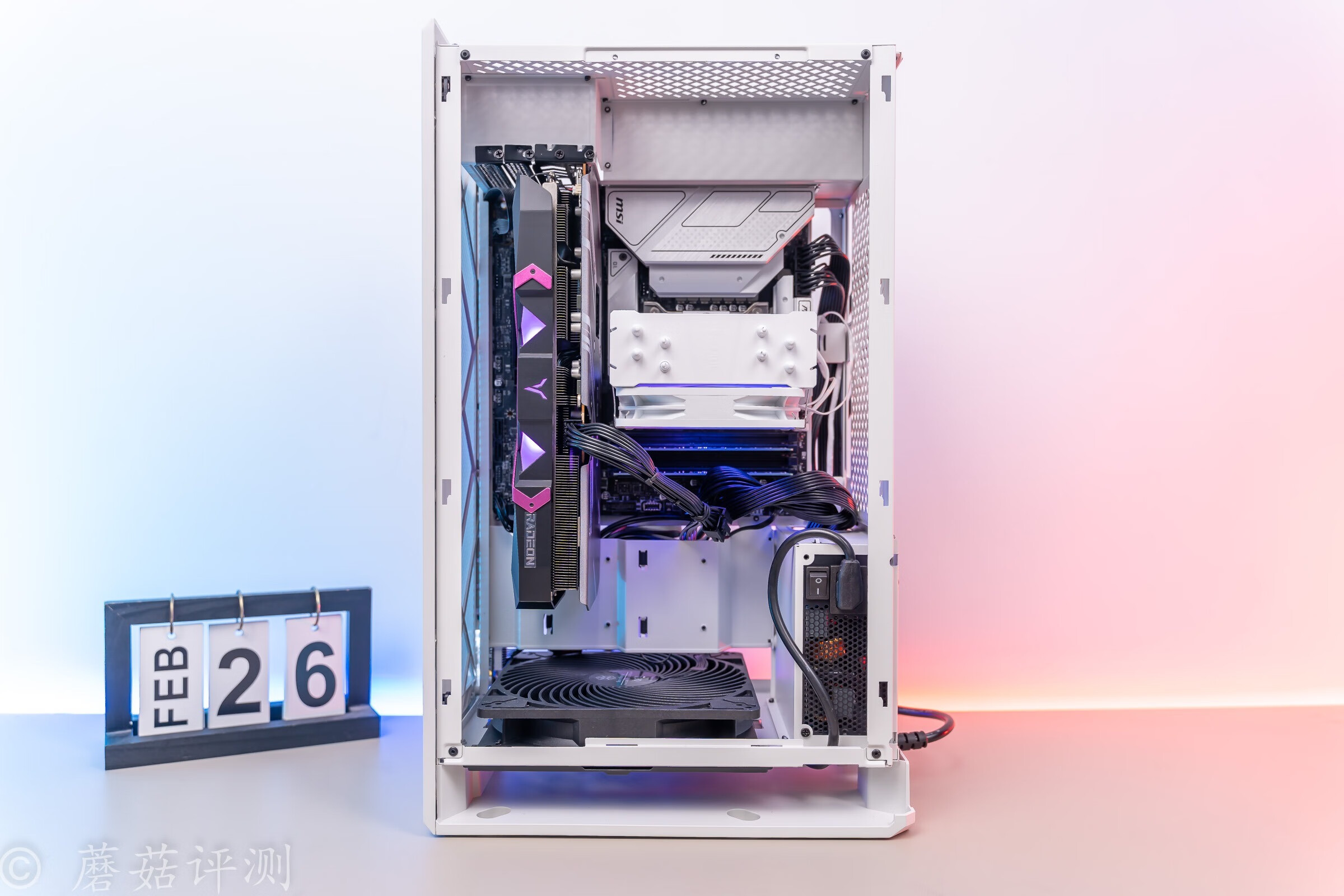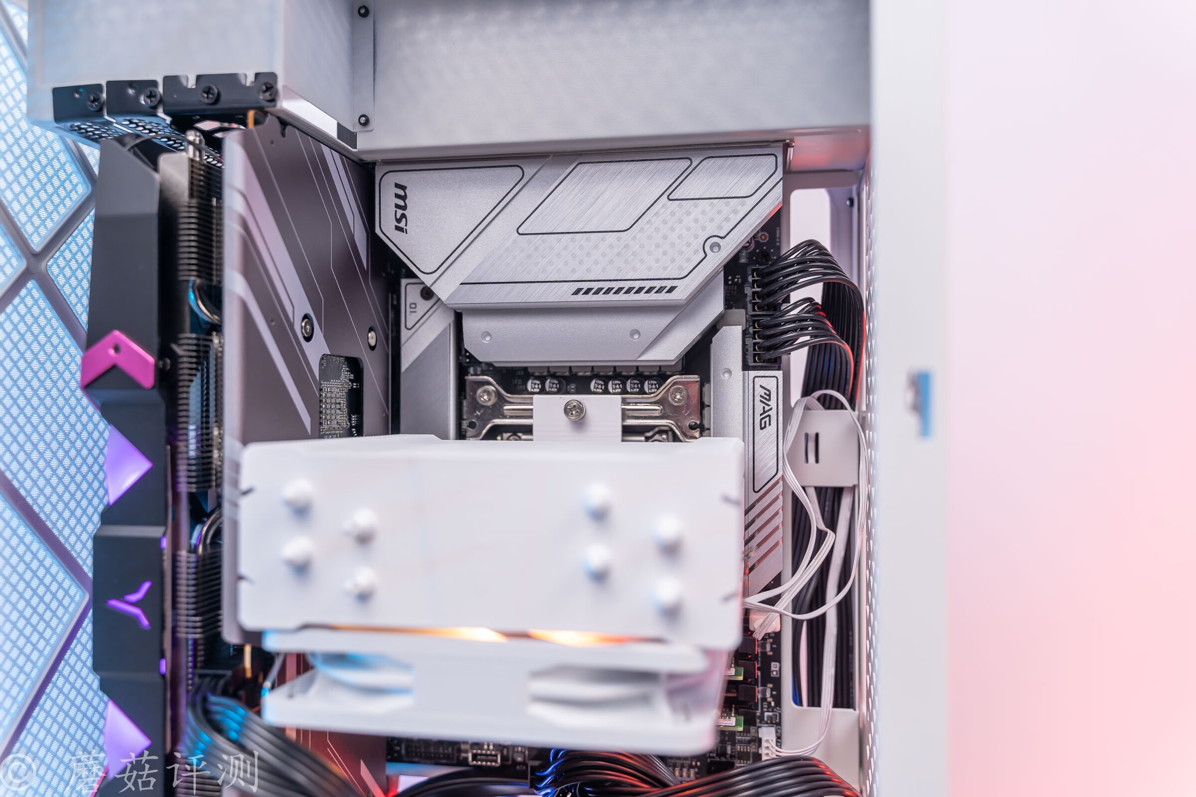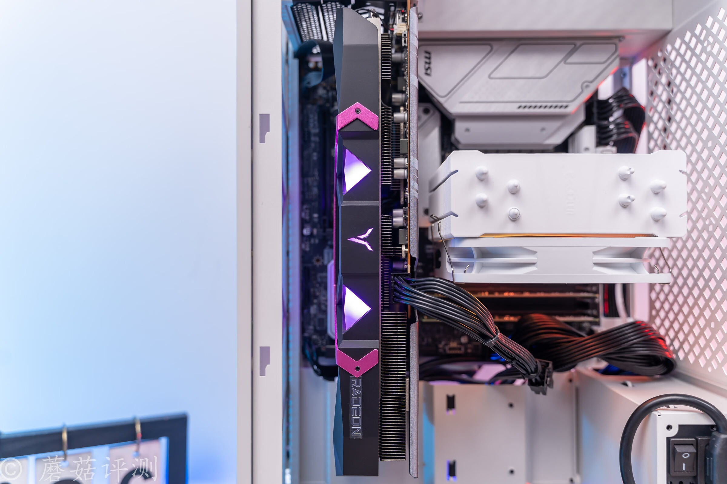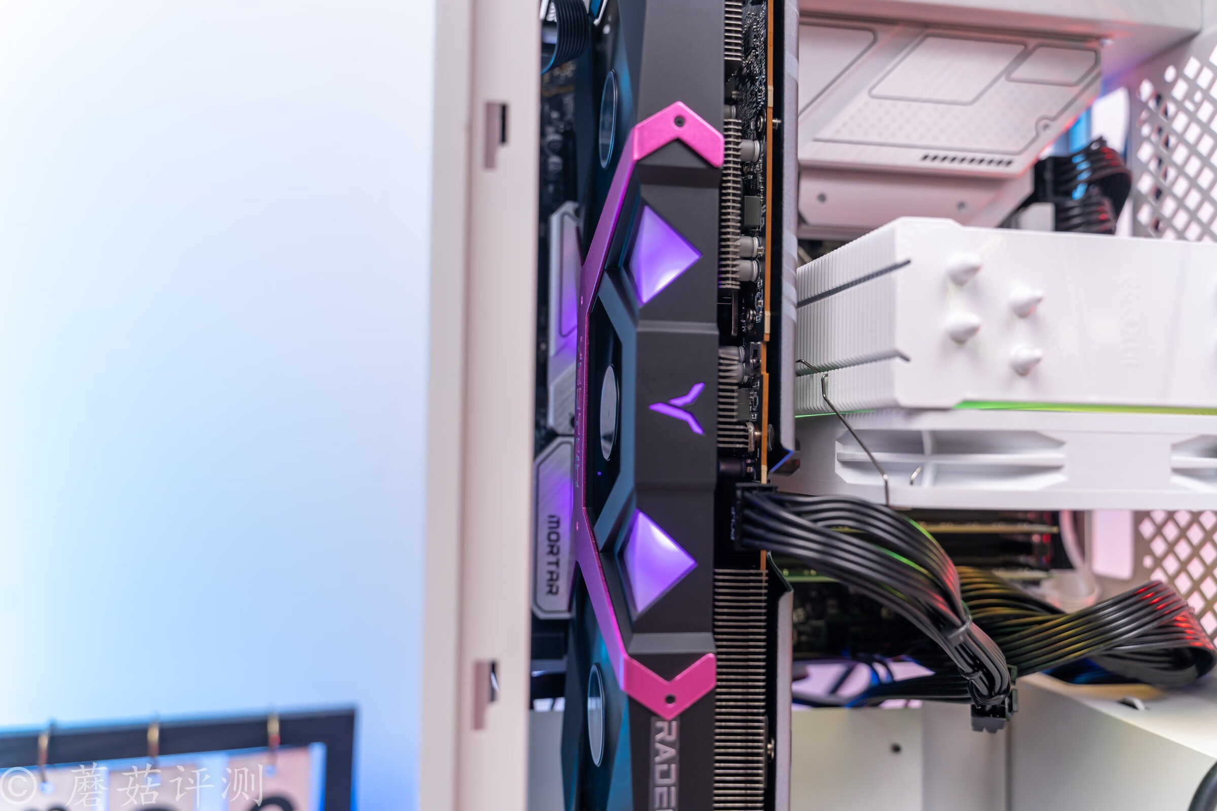 ▼透过机箱侧面的散热格栅,可以看到内部散热塔的ARGB灯效,还不错,有种朦胧美。