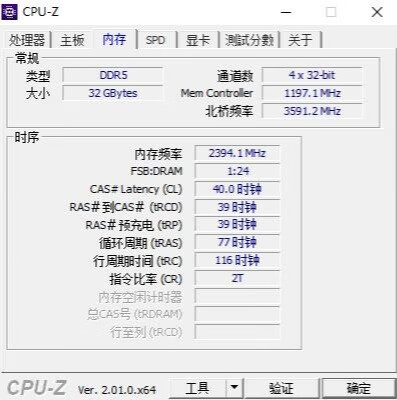 ▼内存是DDR5 4800MHz 16GB*2,时序40-39-39-77。