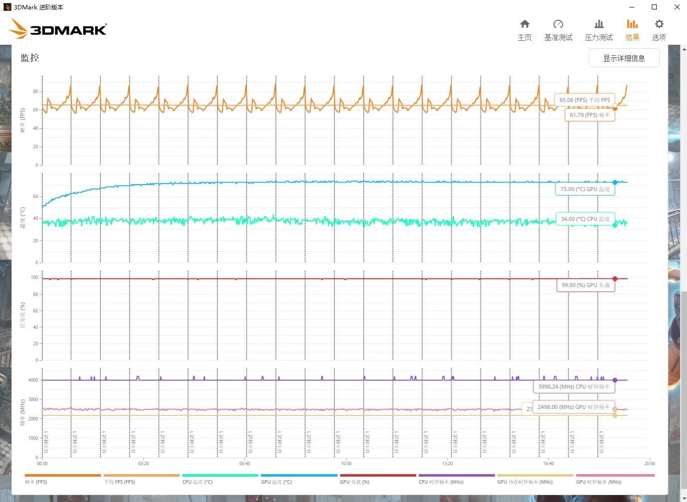 ▼简单跑个3Dmark的压力测试,TS模式,帧数稳定率在99.4%,非常稳定。