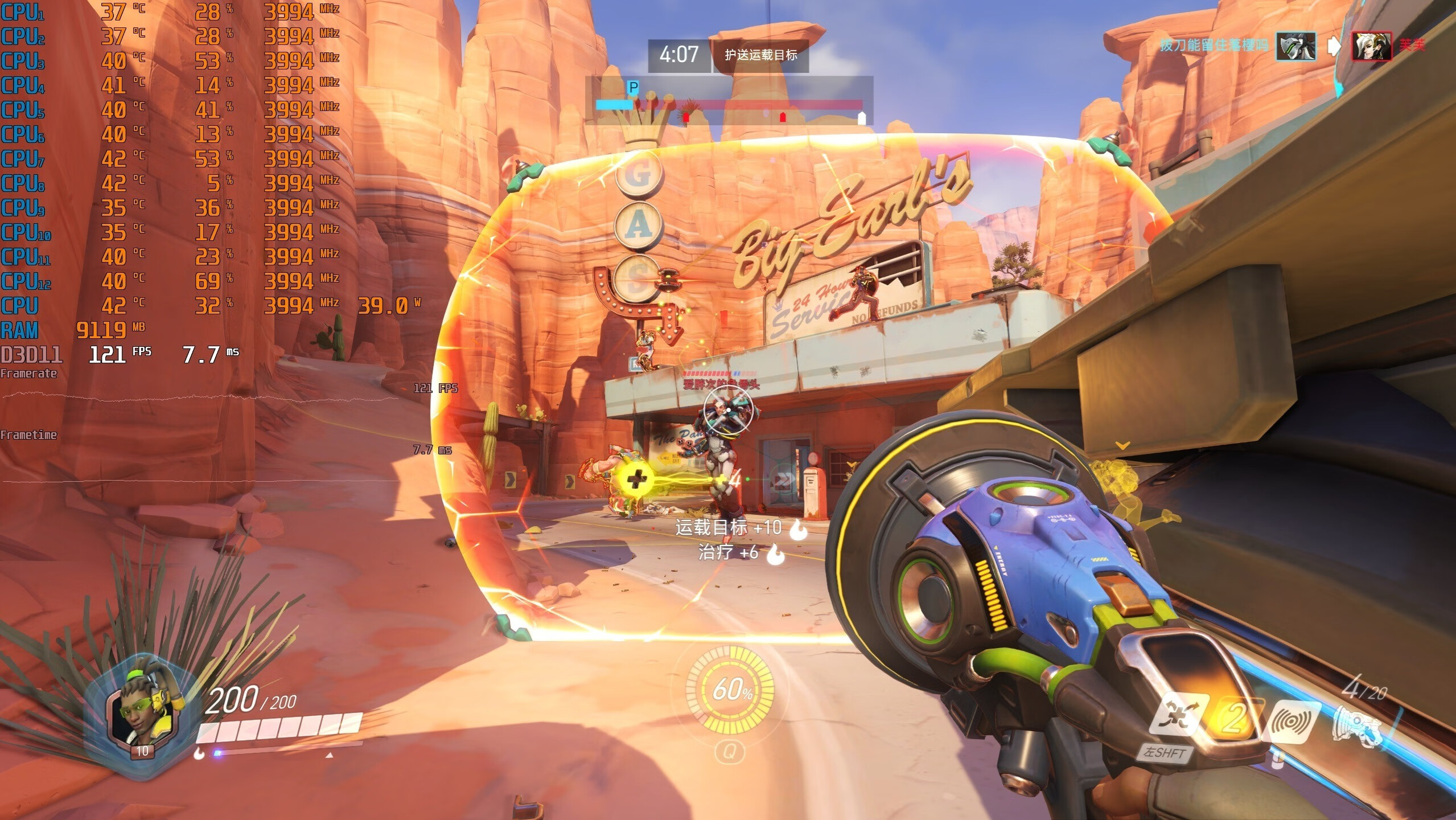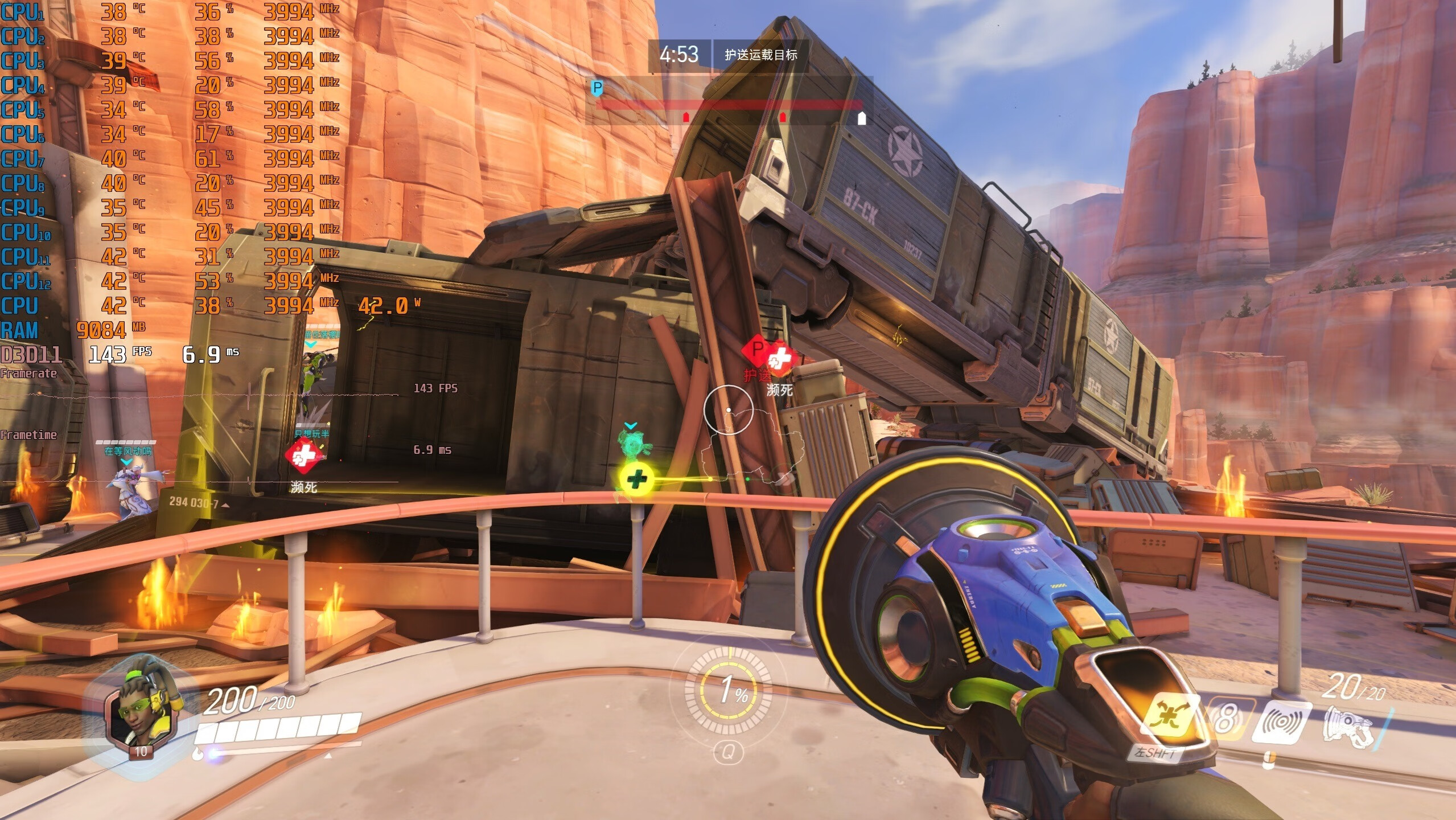 ▼守望先锋,2K分辨率,全极高画质,日常逛街的游戏帧数在143帧左右,挺流畅的。