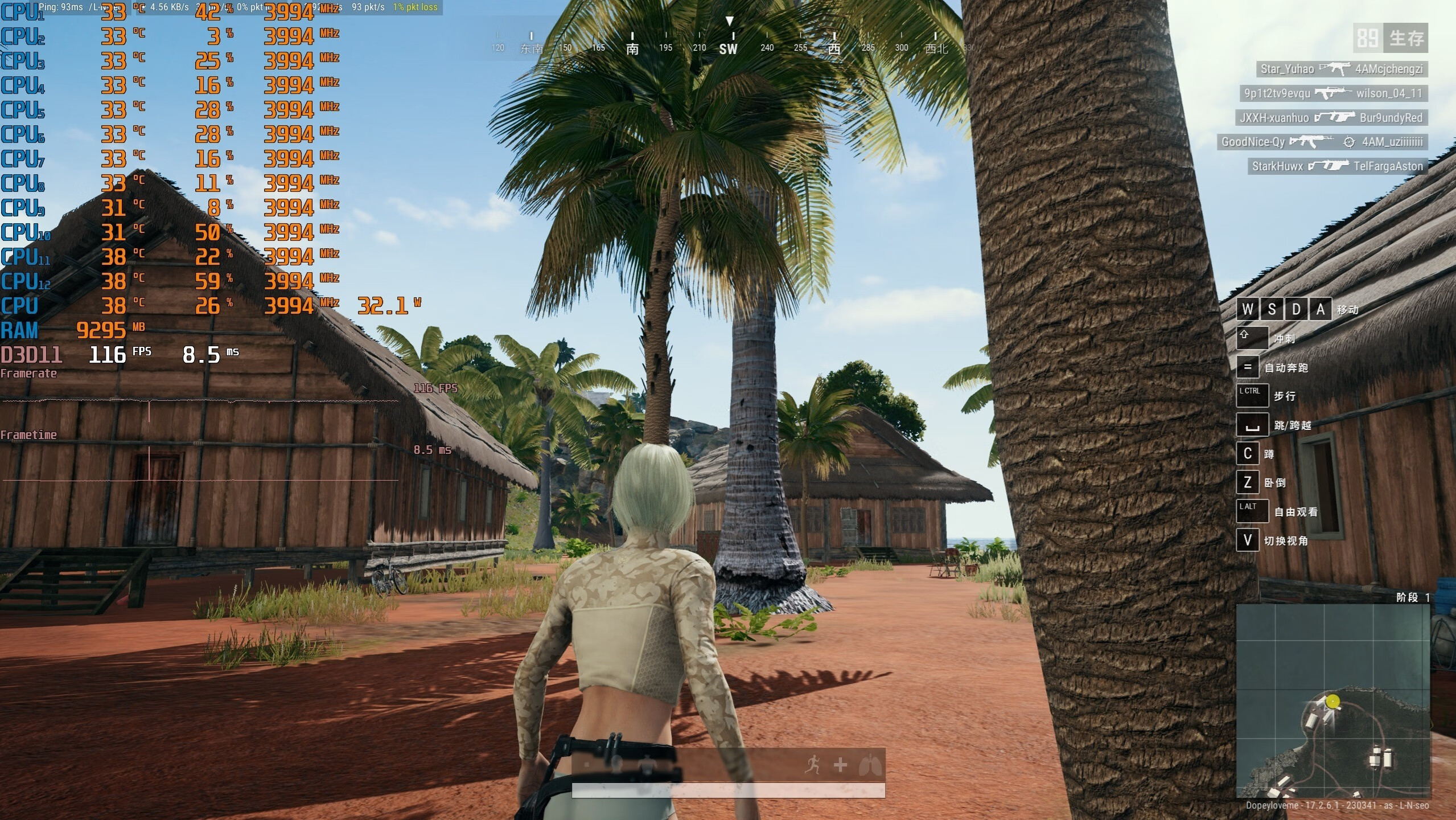 ▼吃鸡,2K分辨率,全高画质,室外的游戏帧数在116帧左右,平时玩起来还可以。