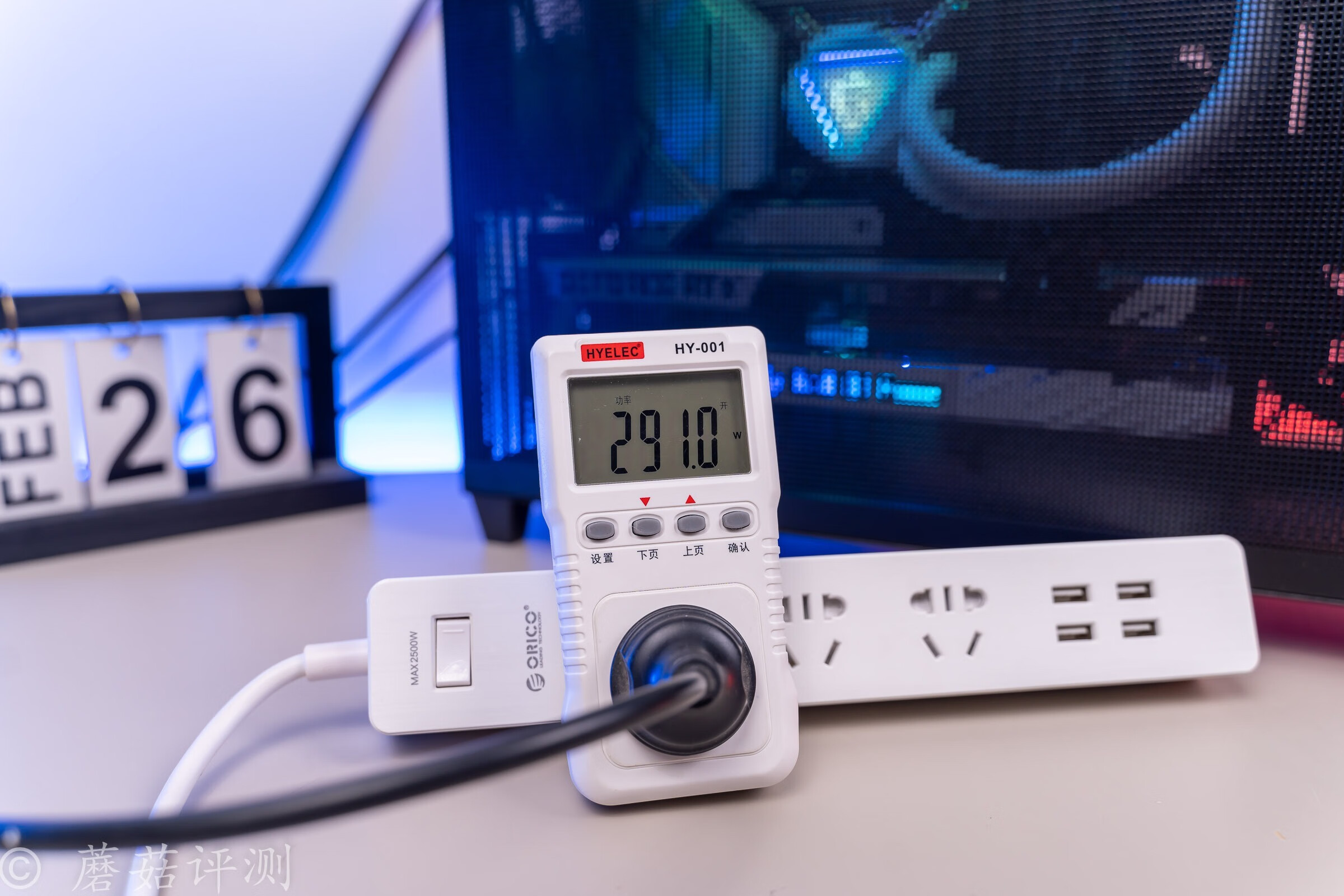 ▼整机输入功耗291W左右,相比较于CPU-Z压力测试的情况,提升了73W左右吧。